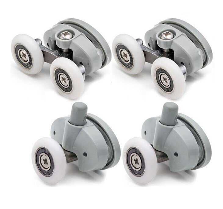 Ролики для душевой кабины 22мм, 2 двойных + 2 одинарных на кнопке. Комплект (4 штуки).