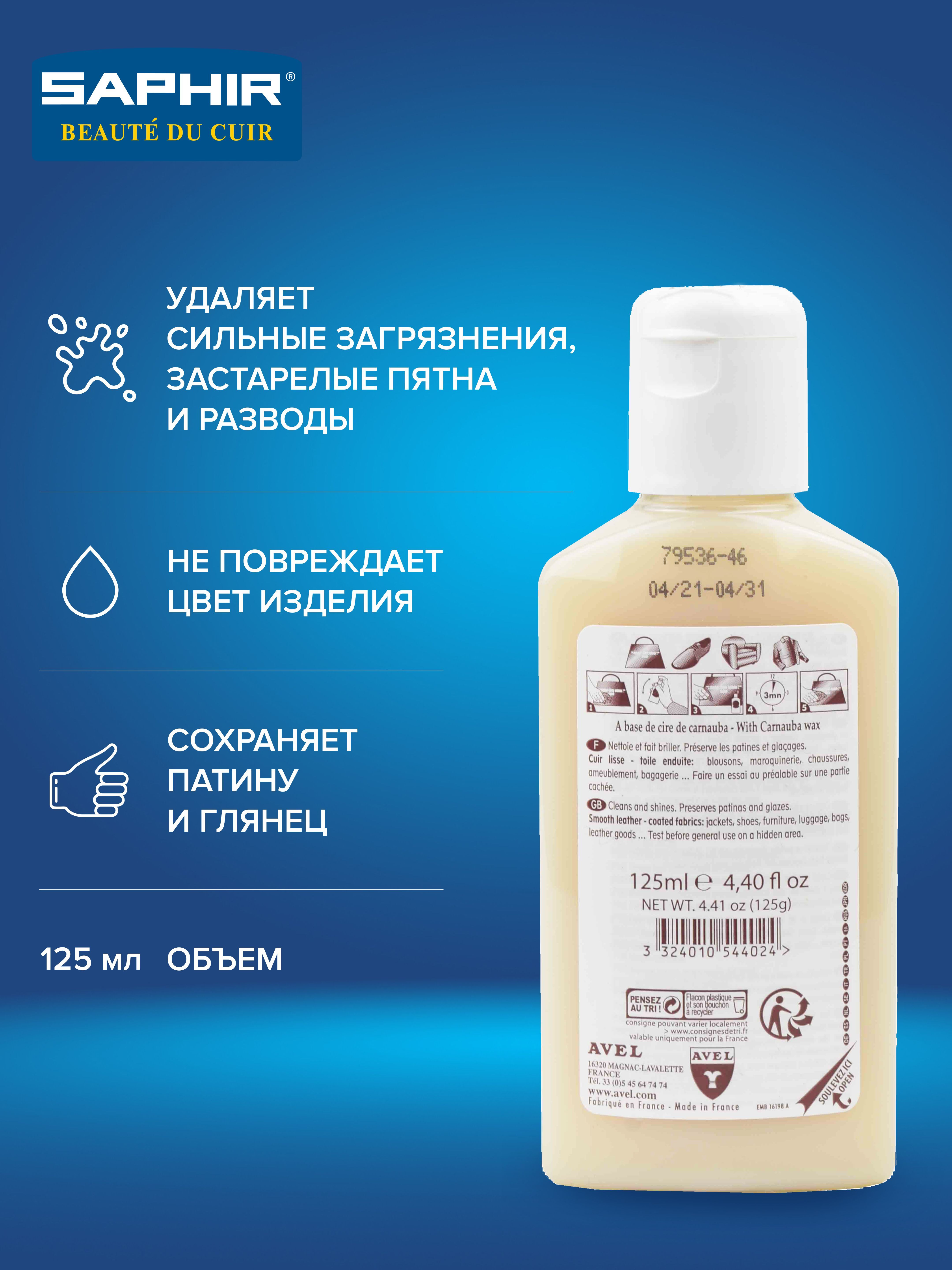 Очиститель, лосьон для курток, обуви, кожгалантереи, чемоданов, мебели, кожи канвас CLEANING LOTION, Saphir, пластик.флакон, 125мл.
