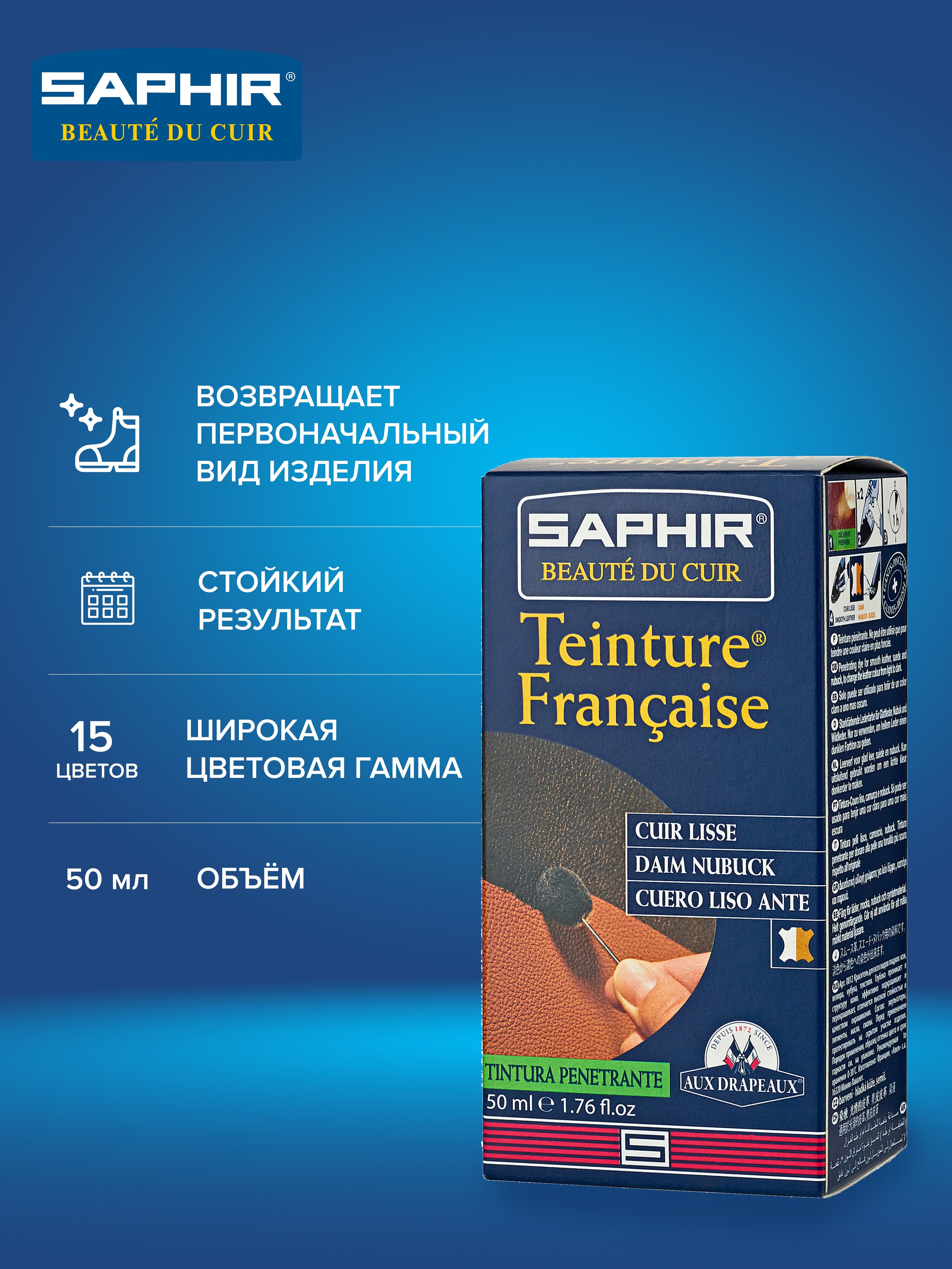 Краситель проникающий Teinture francaise, SAPHIR - 08, ПЛАСТИК, бордовый 50мл. (bordeaux)