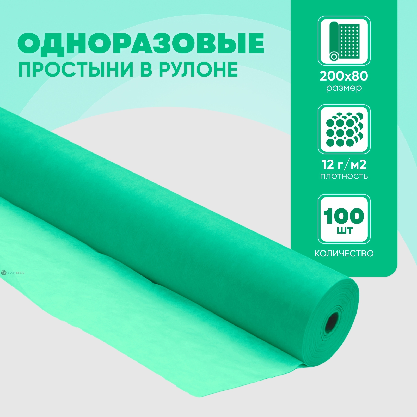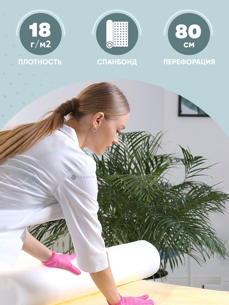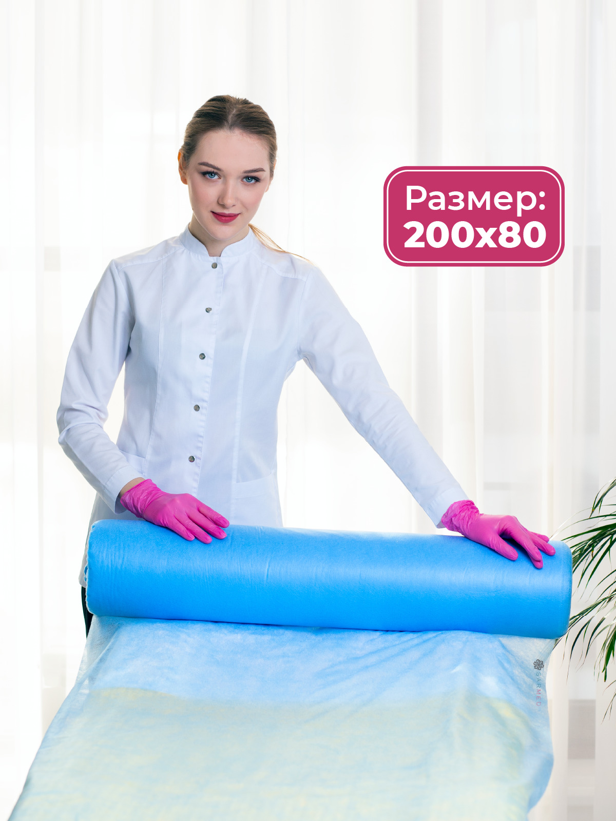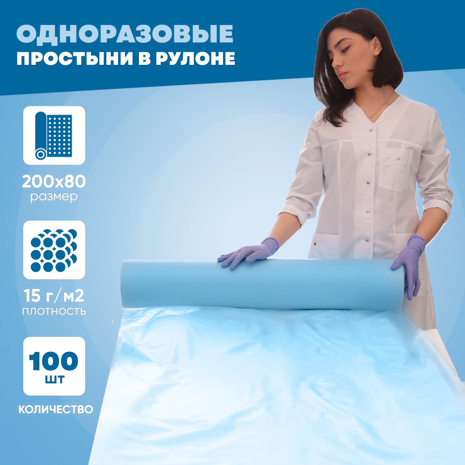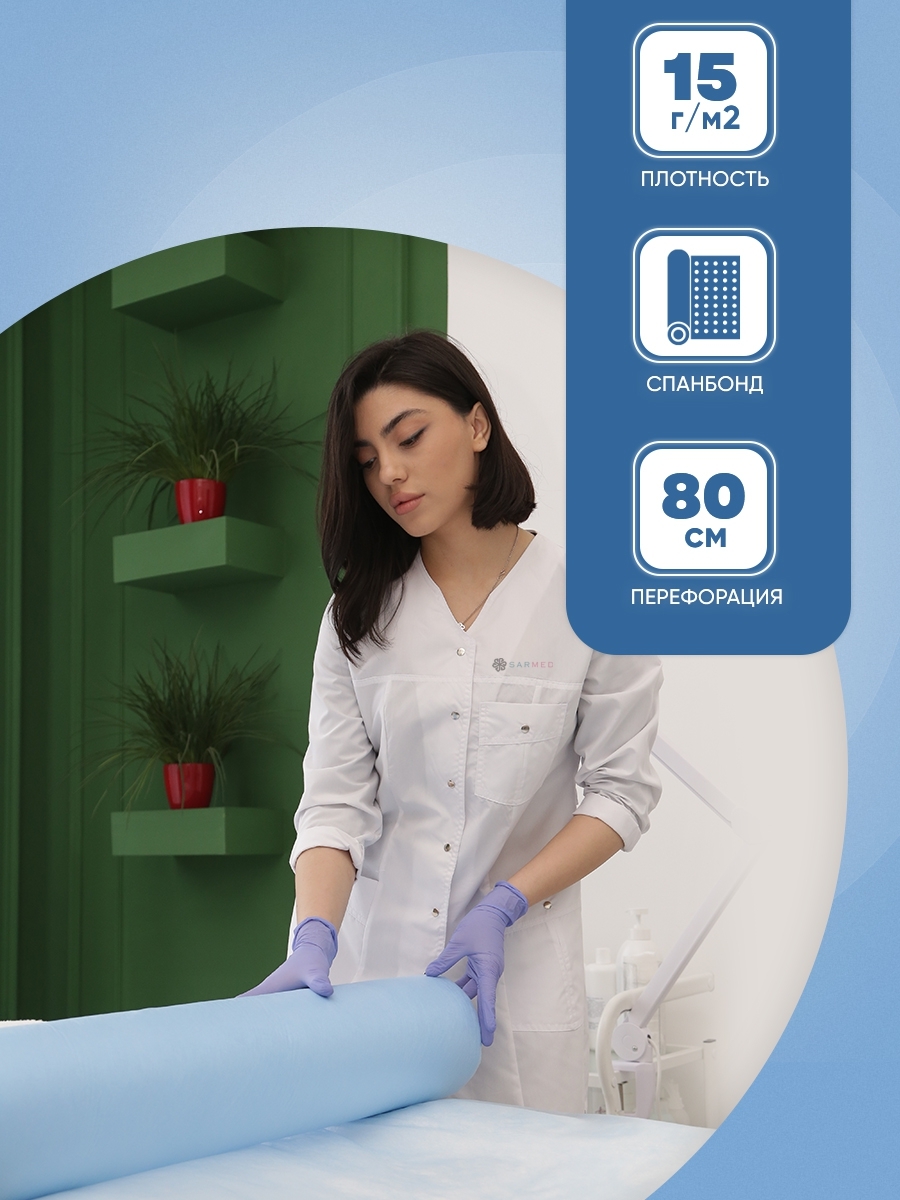 Простыня одноразовая SarMed Комфорт Рулон с перфорацией Спанбонд 18 г/м.кв Голубой 200х80 100 шт/, 80 x 200 см, 100 шт