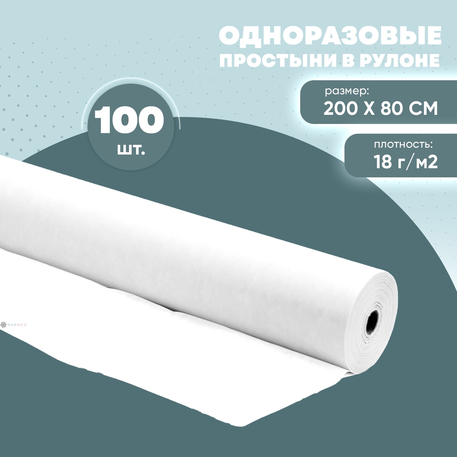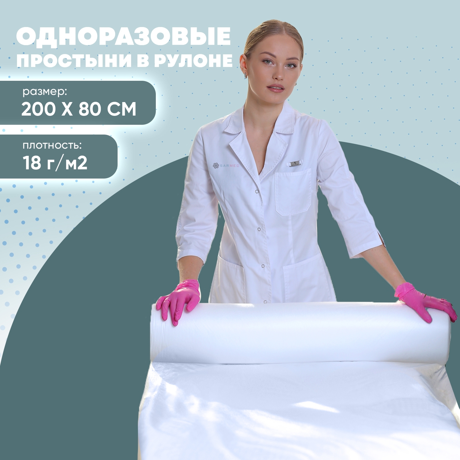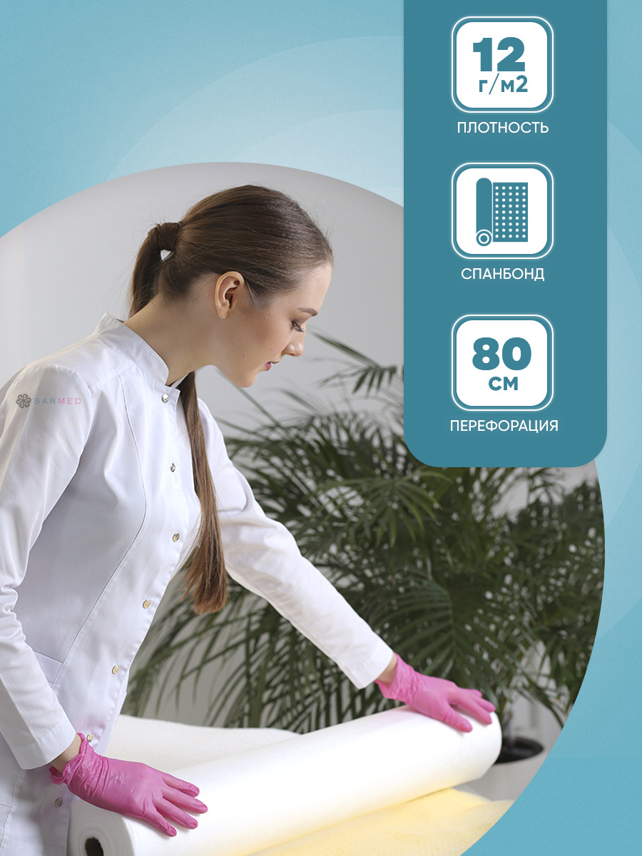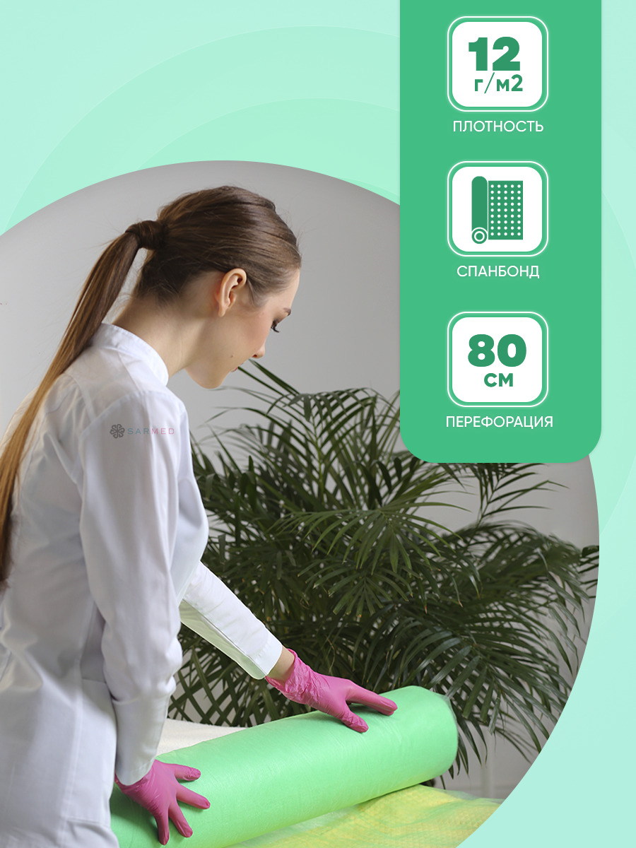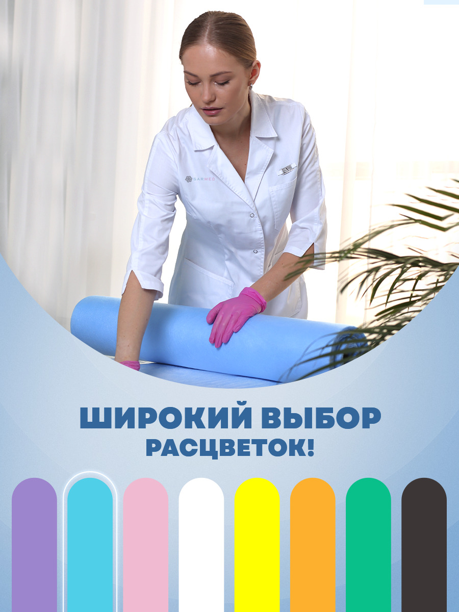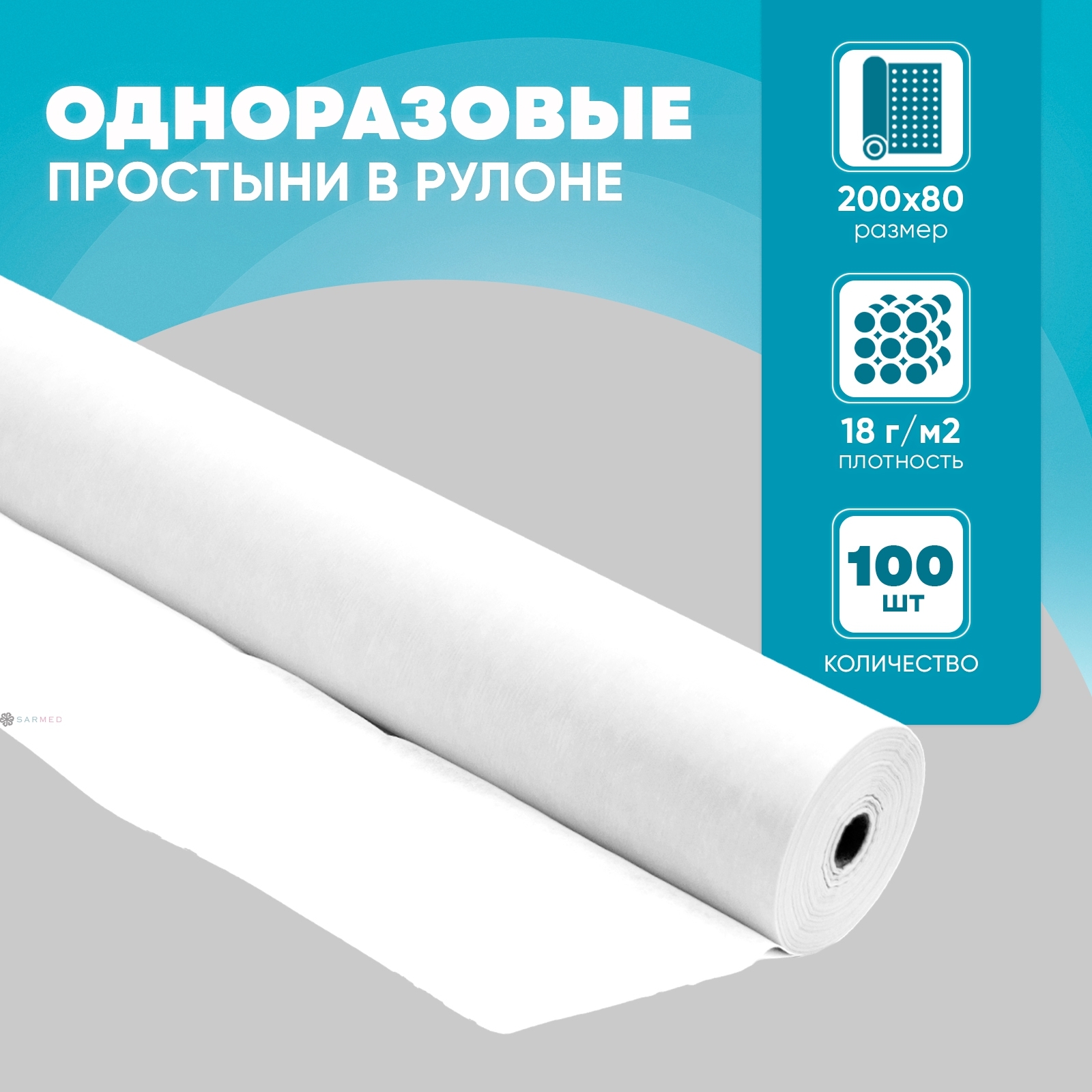 Простыня одноразовая SarMed Комфорт Рулон с перфорацией Спанбонд 18 г/м.кв Голубой 200х80 100 шт/, 80 x 200 см, 100 шт