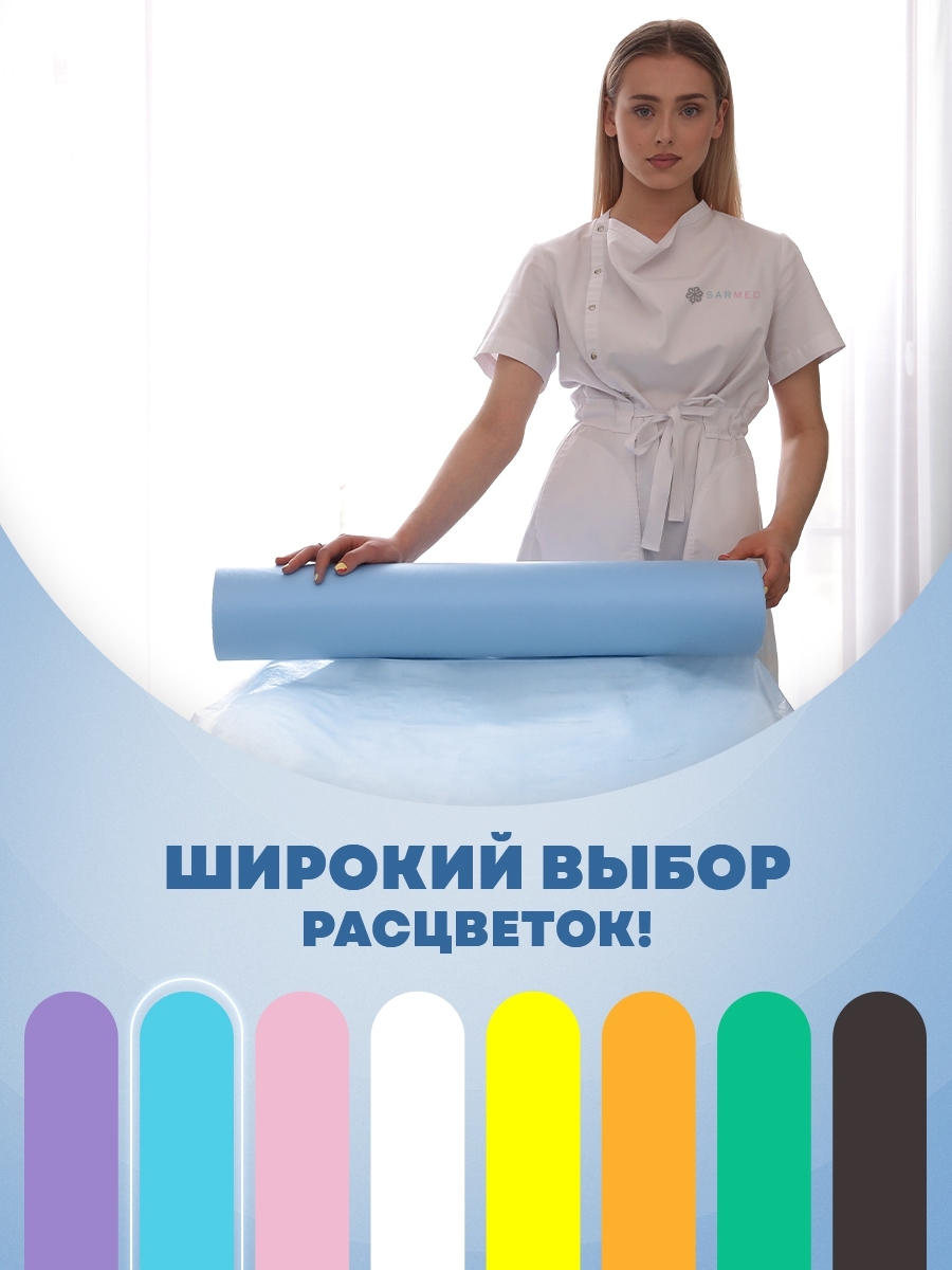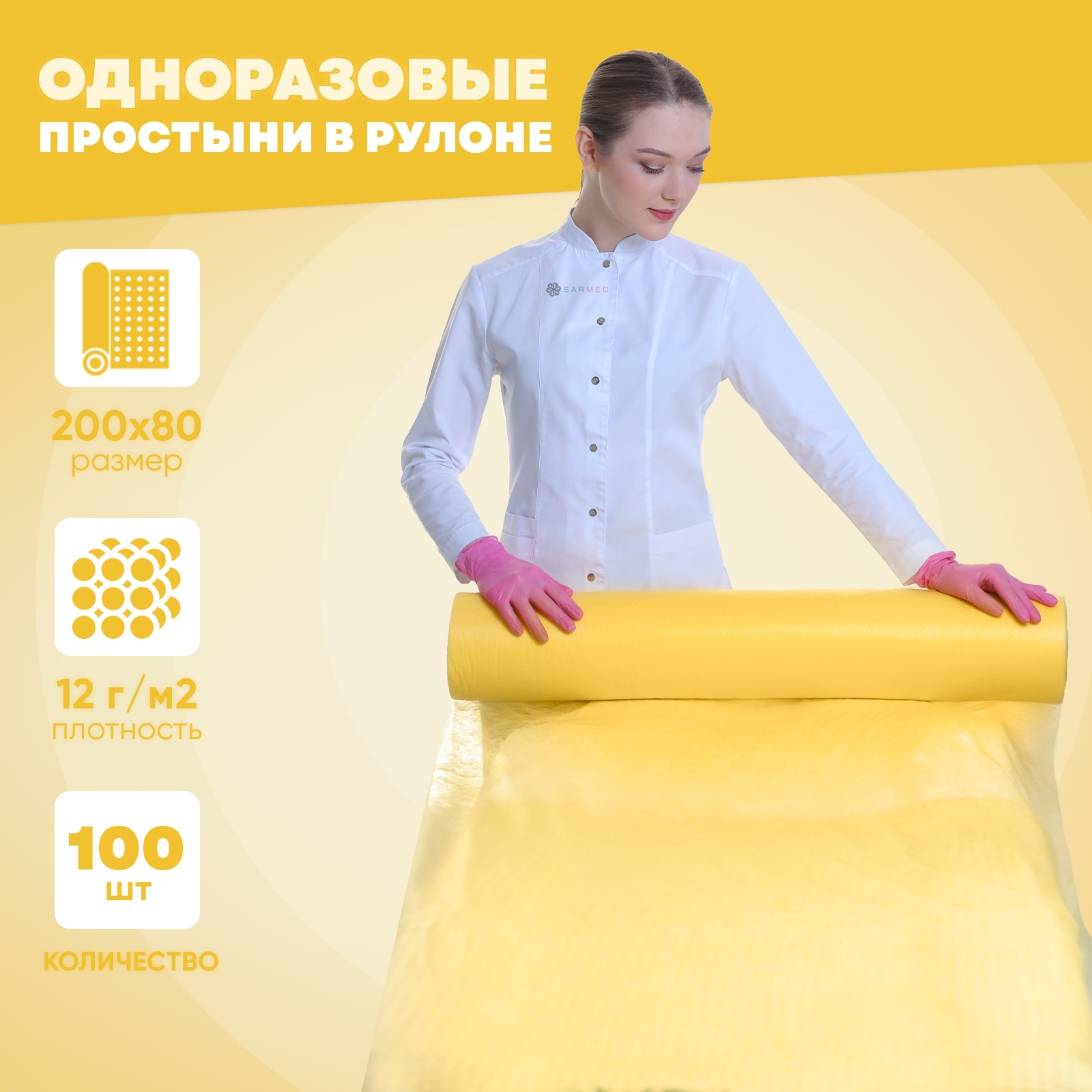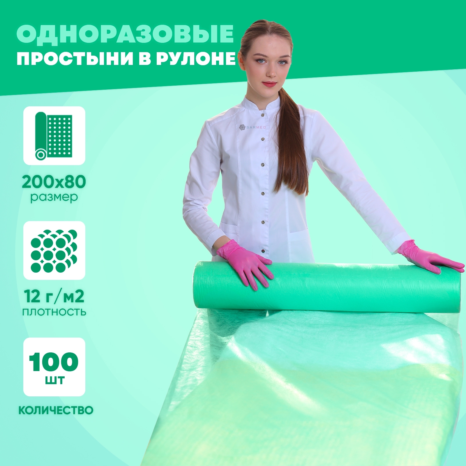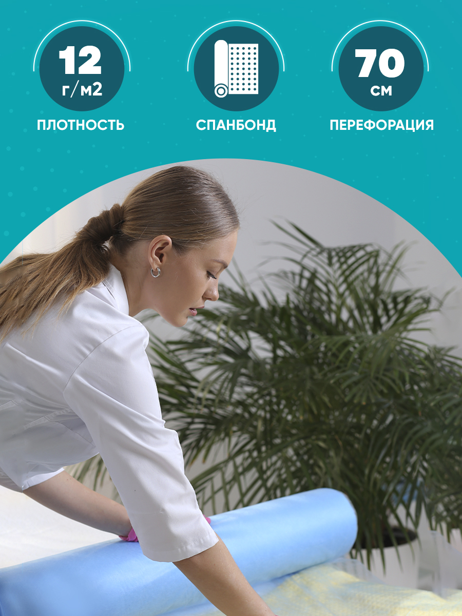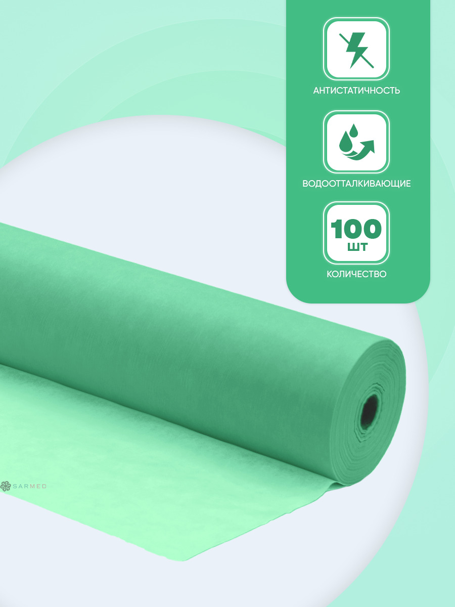 Простыня одноразовая SarMed Комфорт Рулон с перфорацией Спанбонд 18 г/м.кв Голубой 200х80 100 шт/, 80 x 200 см, 100 шт