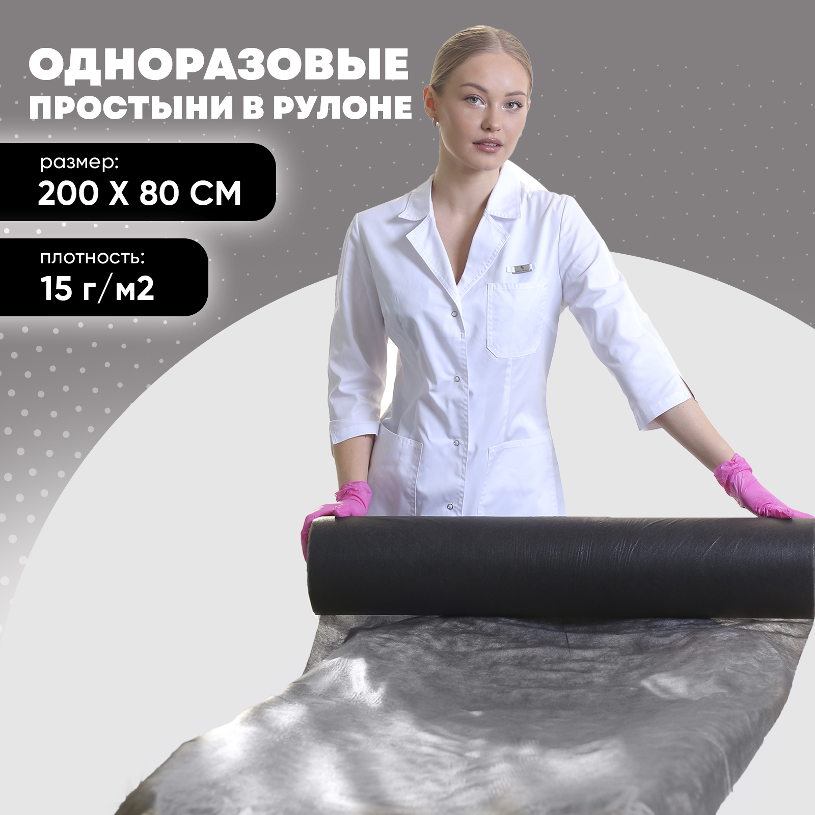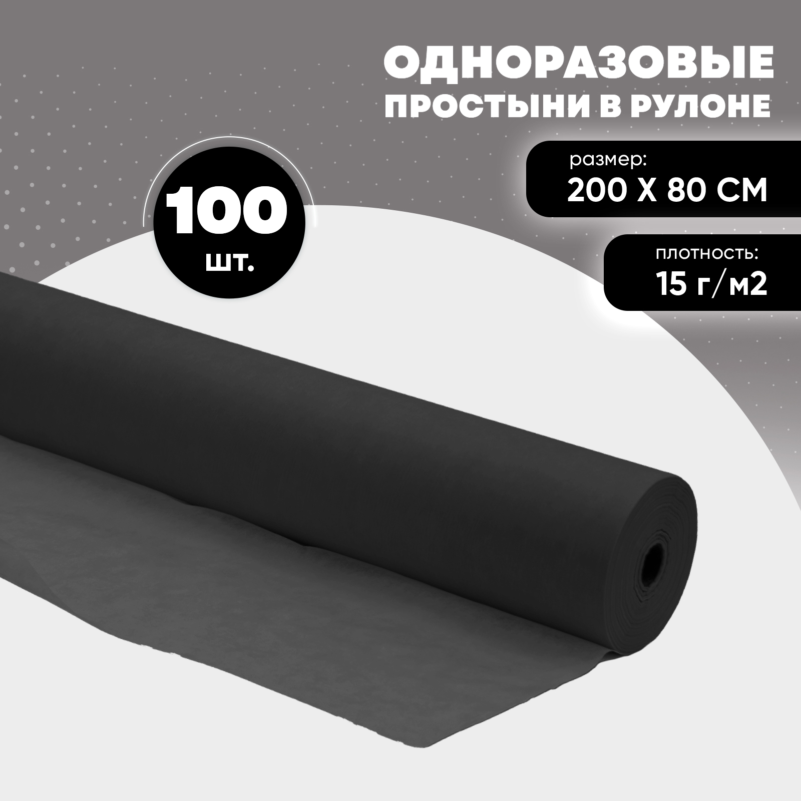 Простыня одноразовая SarMed Комфорт Рулон с перфорацией Спанбонд 18 г/м.кв Черный 200х80 100 шт, 80 x 200 см, 100 шт