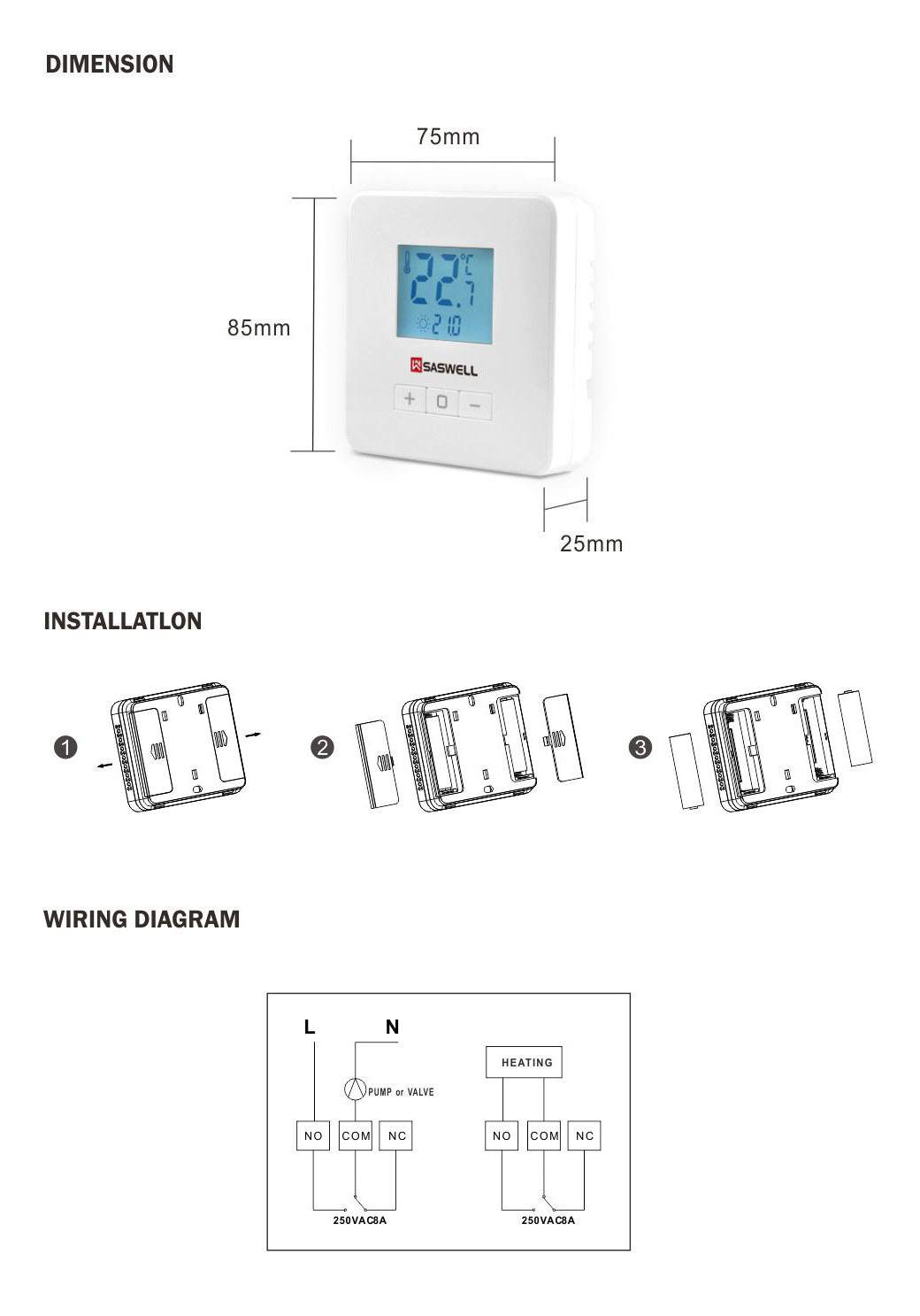 Терморегулятор/термостат Saswell Термостат Saswell SAS919WHB-0 до 600Вт для радиаторного отопления, для теплого пола, белый
