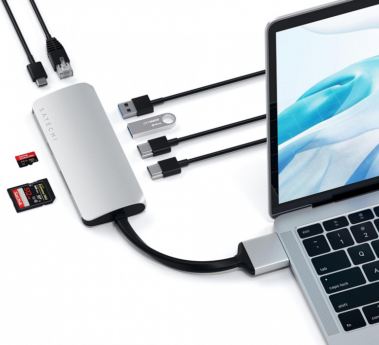 Переходник Satechi Aluminum Multi-Port Adapter 4K серебристый (ST-TCMAS)