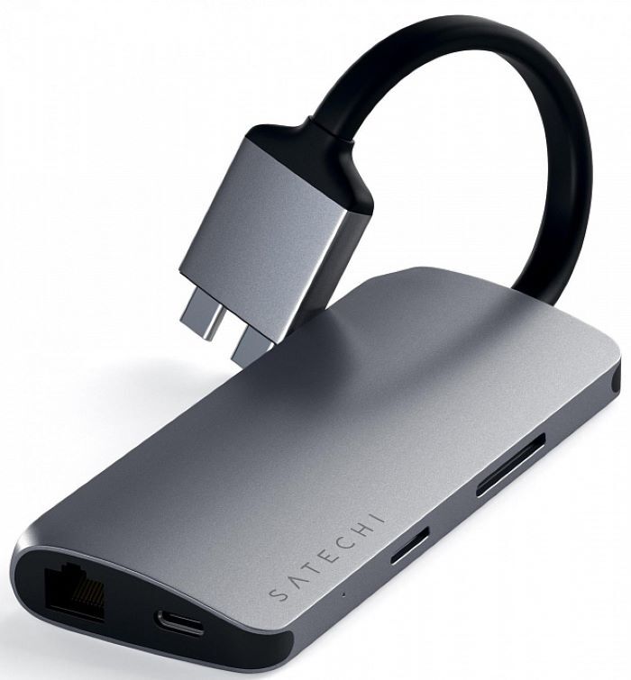 Адаптер (переходник) Satechi Type-C Dual HDMI Adapter для MacBook, серебристый. Уцененный товар