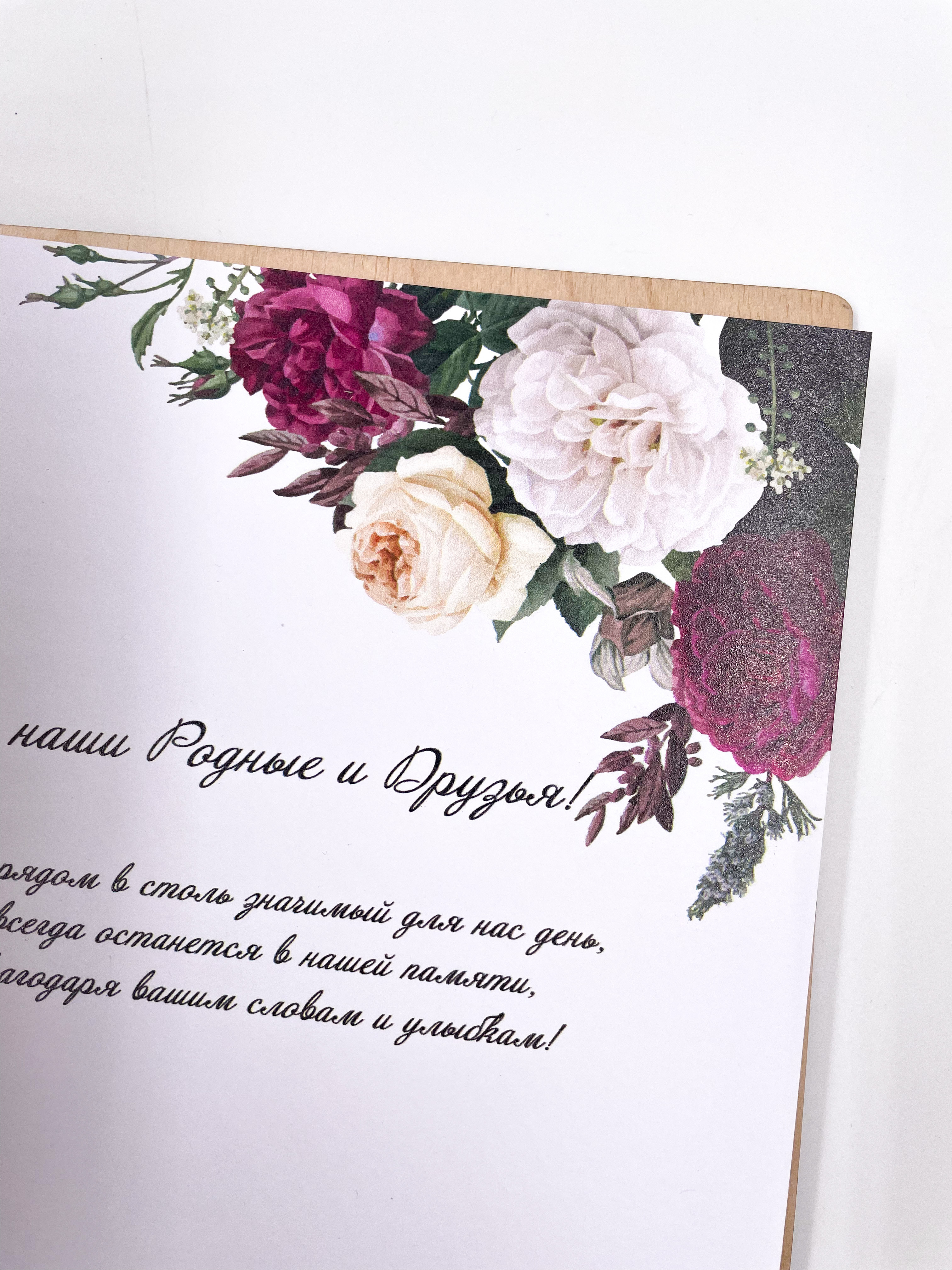 Короб для винной церемонии "Бордовые пионы"/Подарочная упаковка для вина/Свадебная коробка для вина/