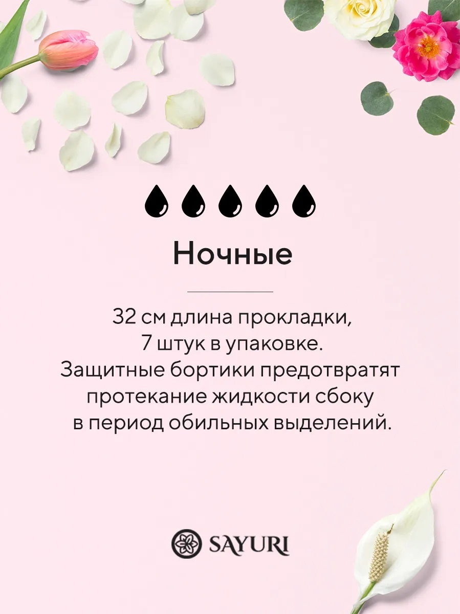 Sayuri Ночные гигиенические прокладки Super Soft, 32 см, 7 шт