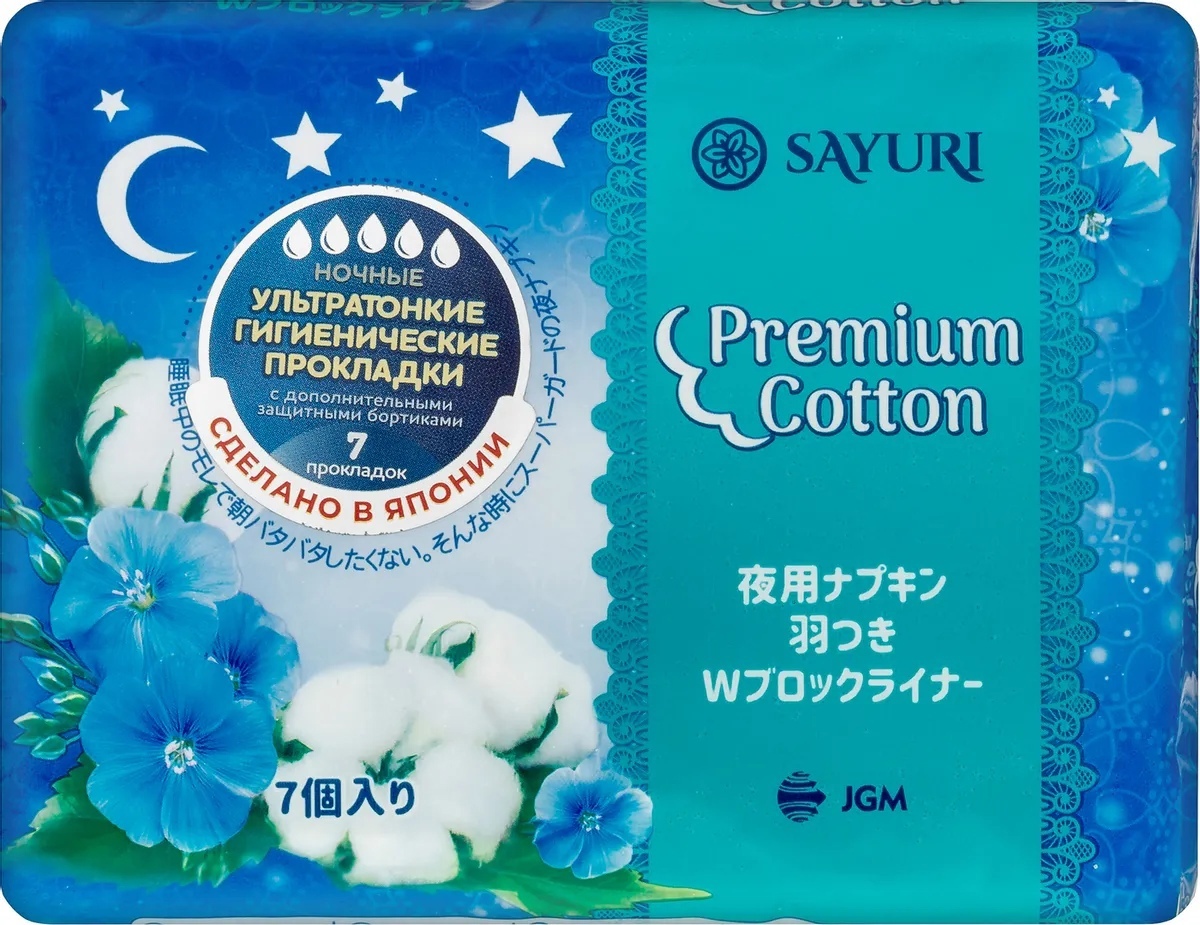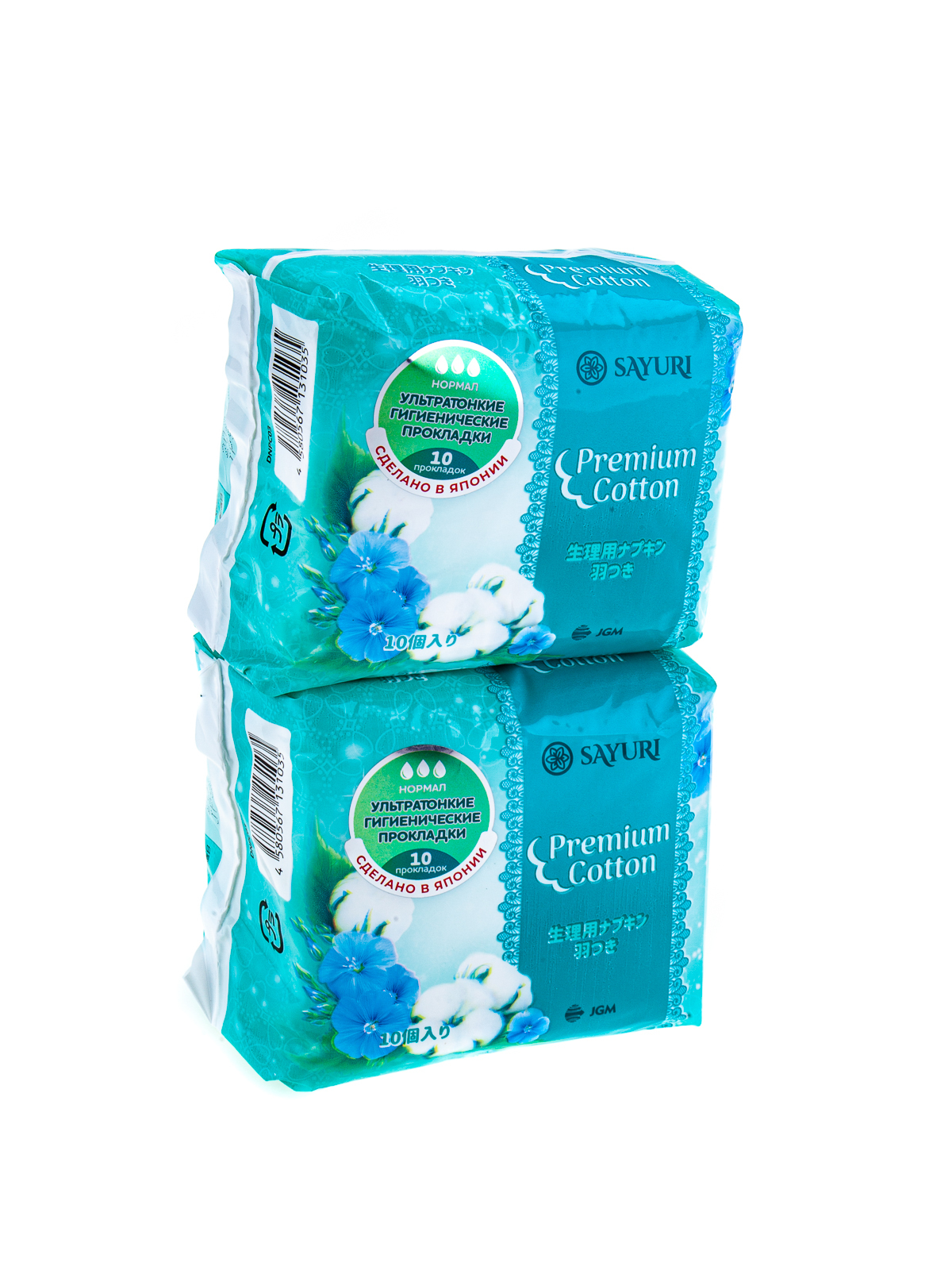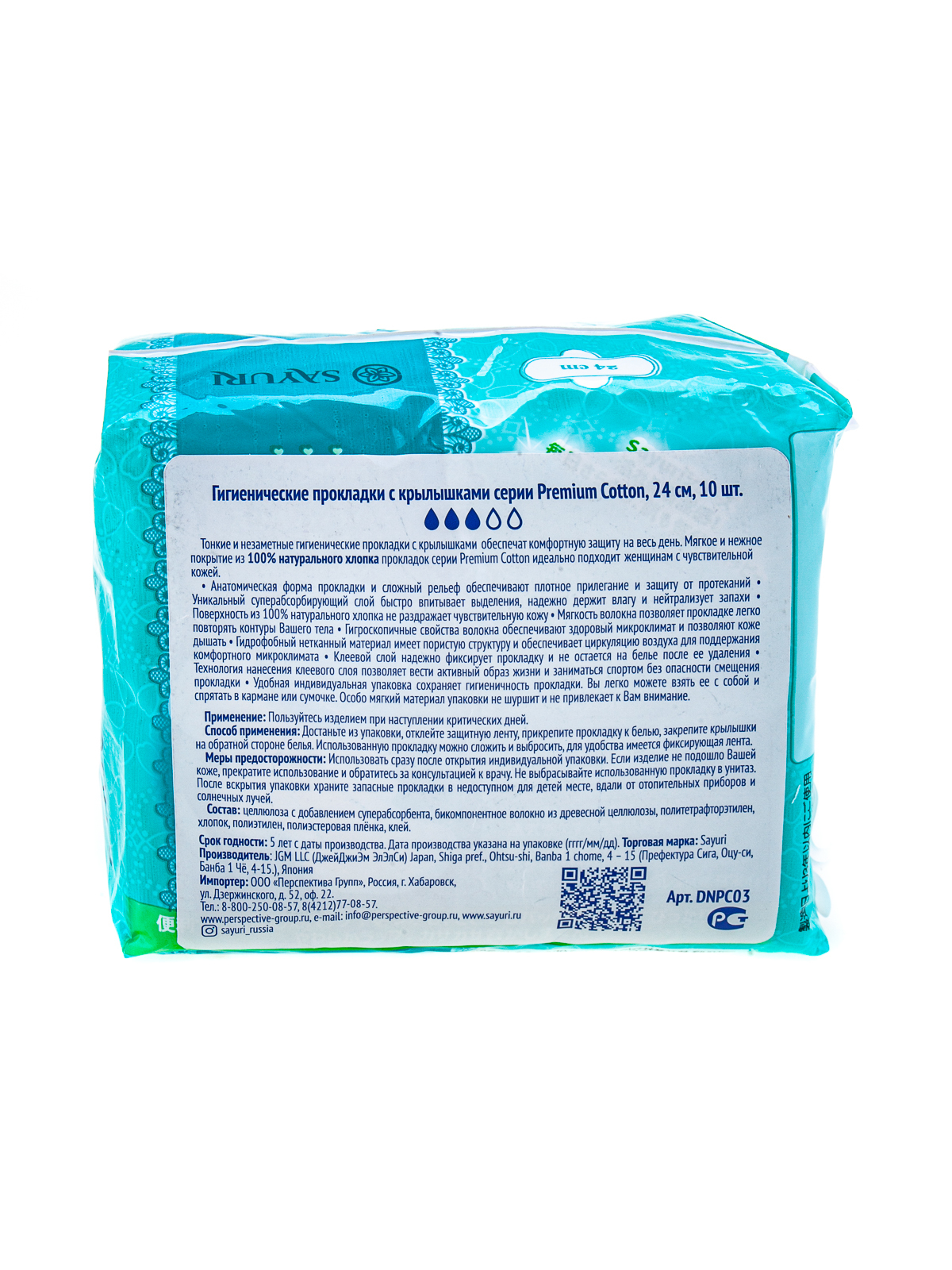Гигиенические прокладки для критических дней Premium Cotton SAYURI , супер 24 см. (набор 2 шт.)