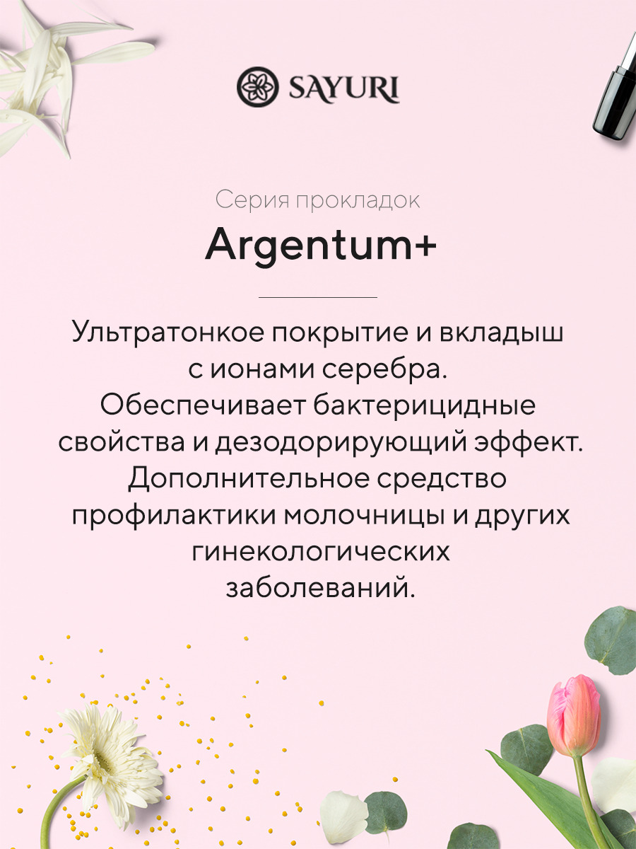 Sayuri Ежедневные гигиенические прокладки Argentum+ , 15 см, 32 шт