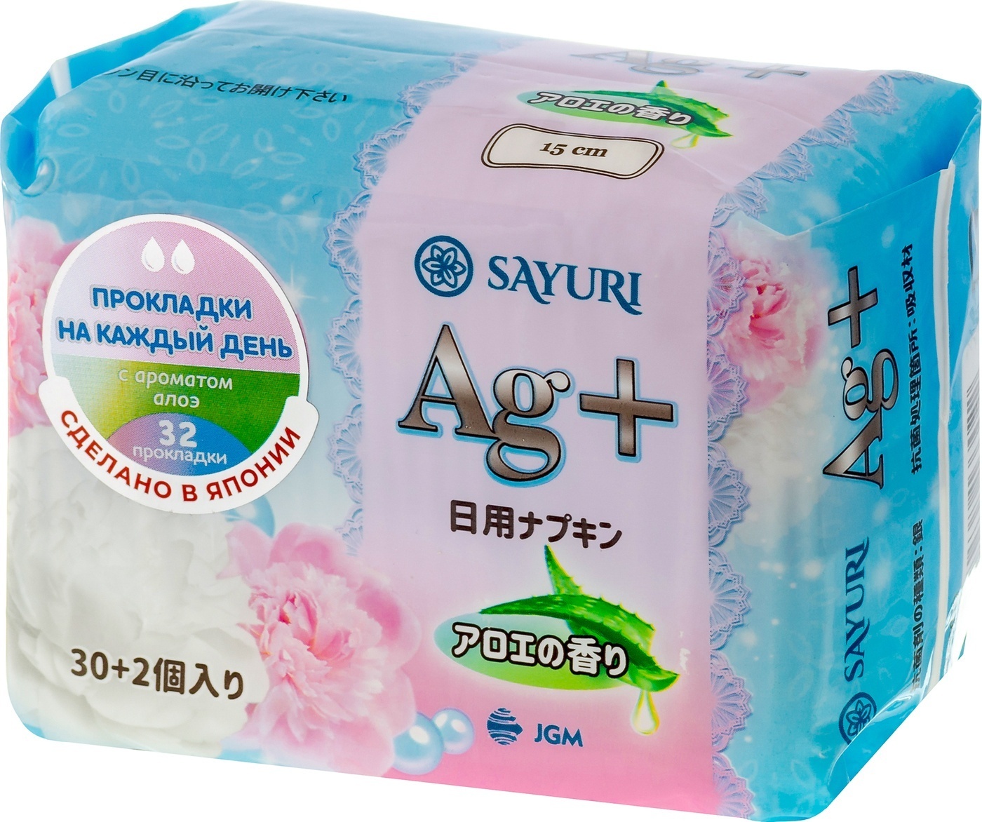 Ежедневные гигиенические прокладки из Японии с серебром SAYURI Argentum+, 15 см (набор из 2 шт.)