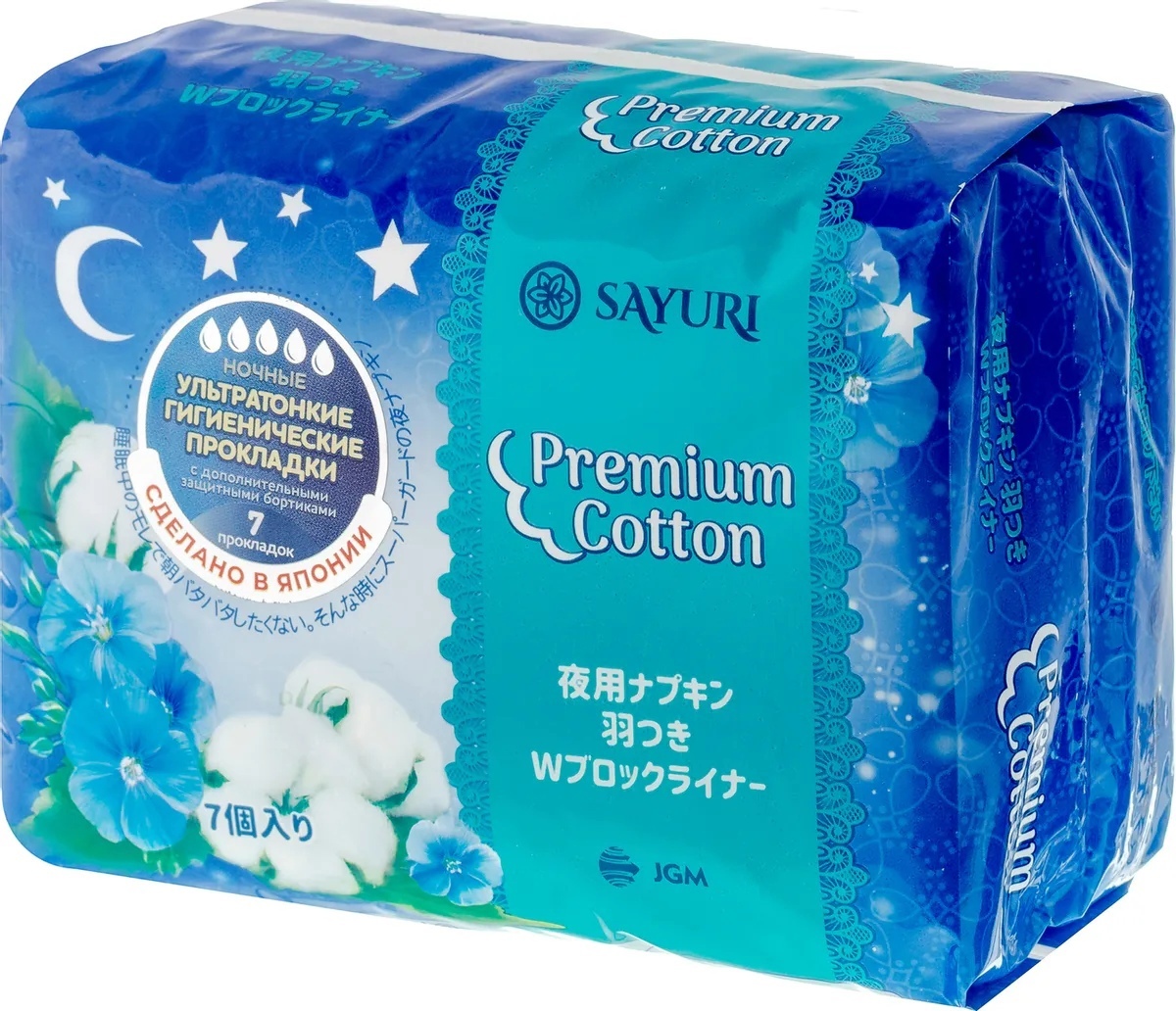 Sayuri Ночные гигиенические прокладки Premium Cotton, 32 см, 7 шт