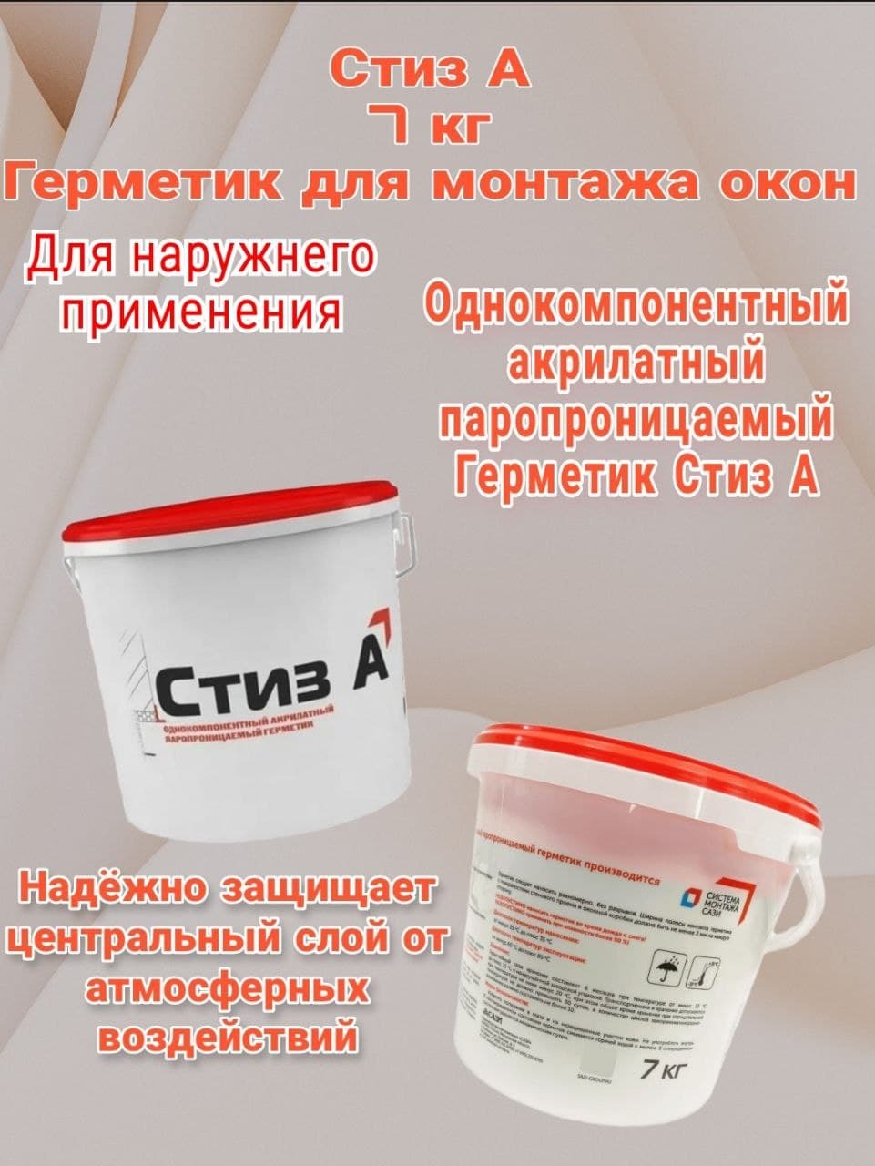 Герметик СТИЗ А, 7 кг, для установки окон, Паропроницаемый, белый