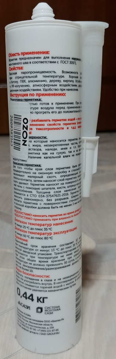 Герметик СТИЗ А для наружного слоя монтажного шва 0,44 кг картуш 4шт.