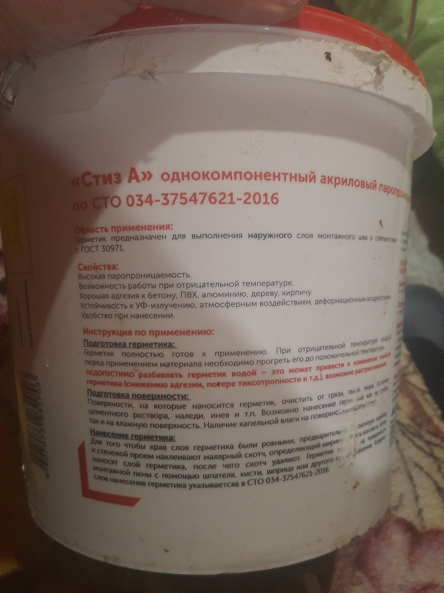 Герметик СТИЗ А для наружного слоя монтажного шва 7 кг
