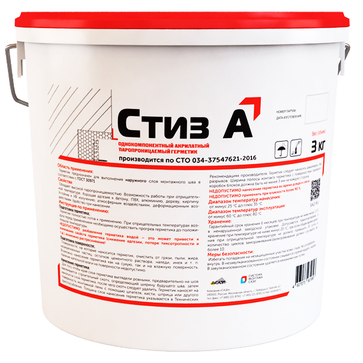 Герметик СТИЗ А для наружного слоя монтажного шва 3 кг