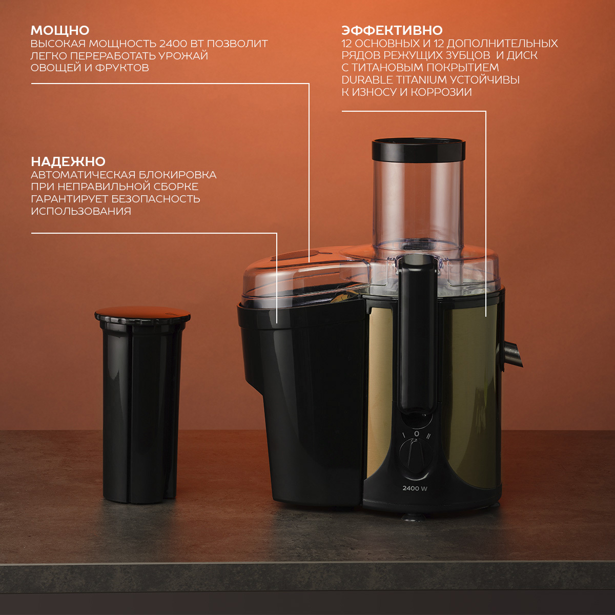 Соковыжималка центробежная Scarlett SC-JE50S52, 2400 Вт, металлический корпус, Max Power, бронза