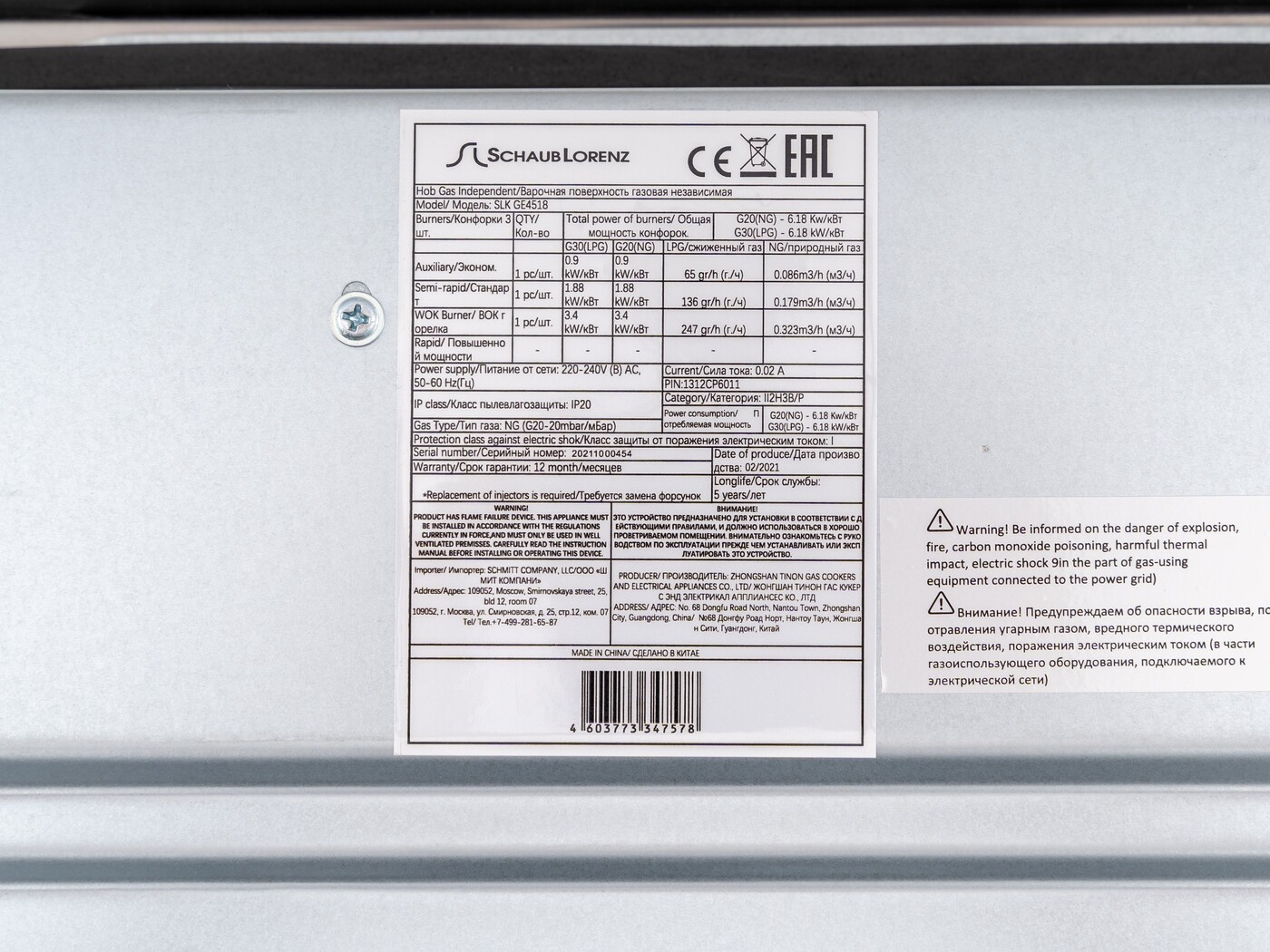 Газовая варочная панель Schaub Lorenz SLK GL4518