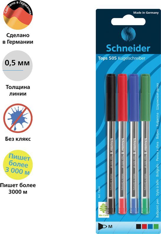Набор шариковых ручек Schneider Tops 505 M, 4 цвета, 1.0 мм, 4 штуки