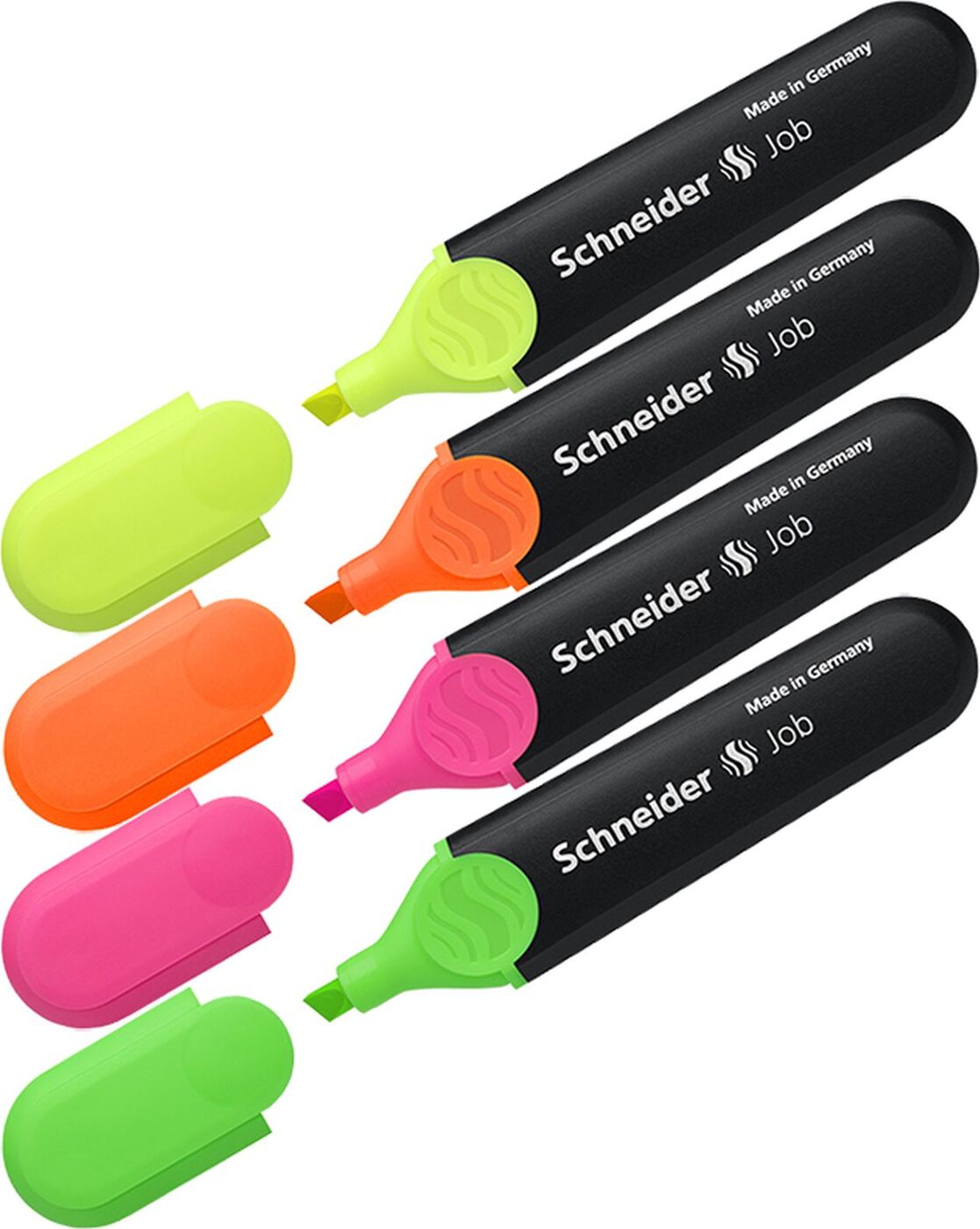 Набор текстмаркеров Job Universal, 1+5 мм, 4 шт., (желтый, оранжевый, розовый, зеленый).