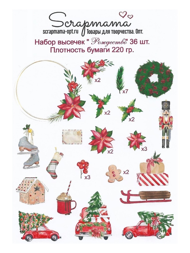 Набор высечек для скрапбукинга "Рождество", 36 штук в наборе, матовая бумага, плотность 220 гр