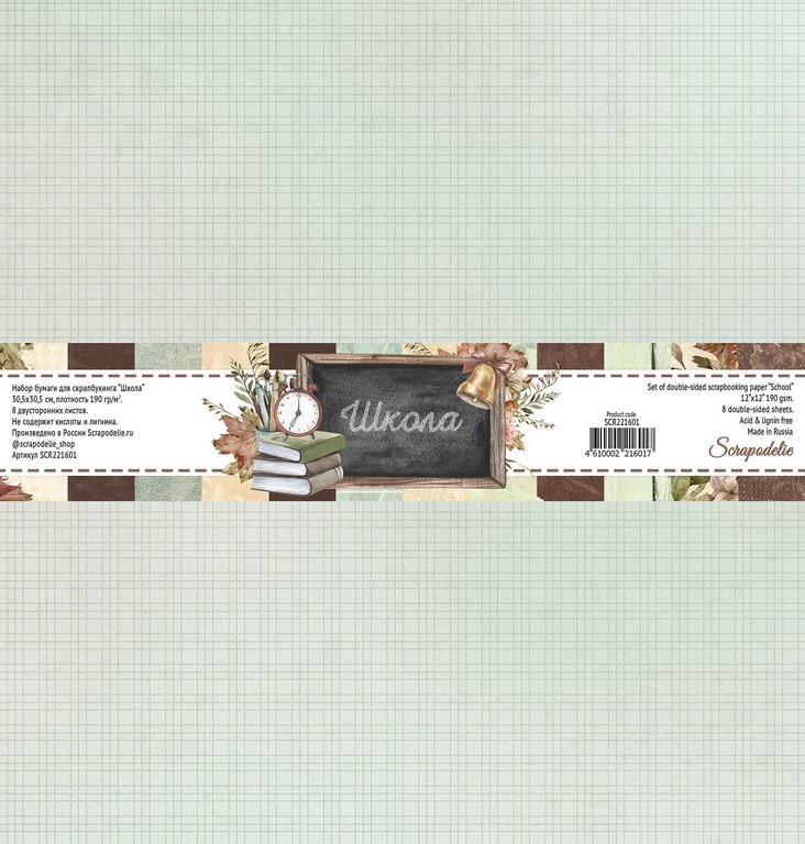 Набор бумаги для скрапбукинга "Школа" от Scrapodelie 30х30 см, 8 двусторонних листов, 190 гр/м2
