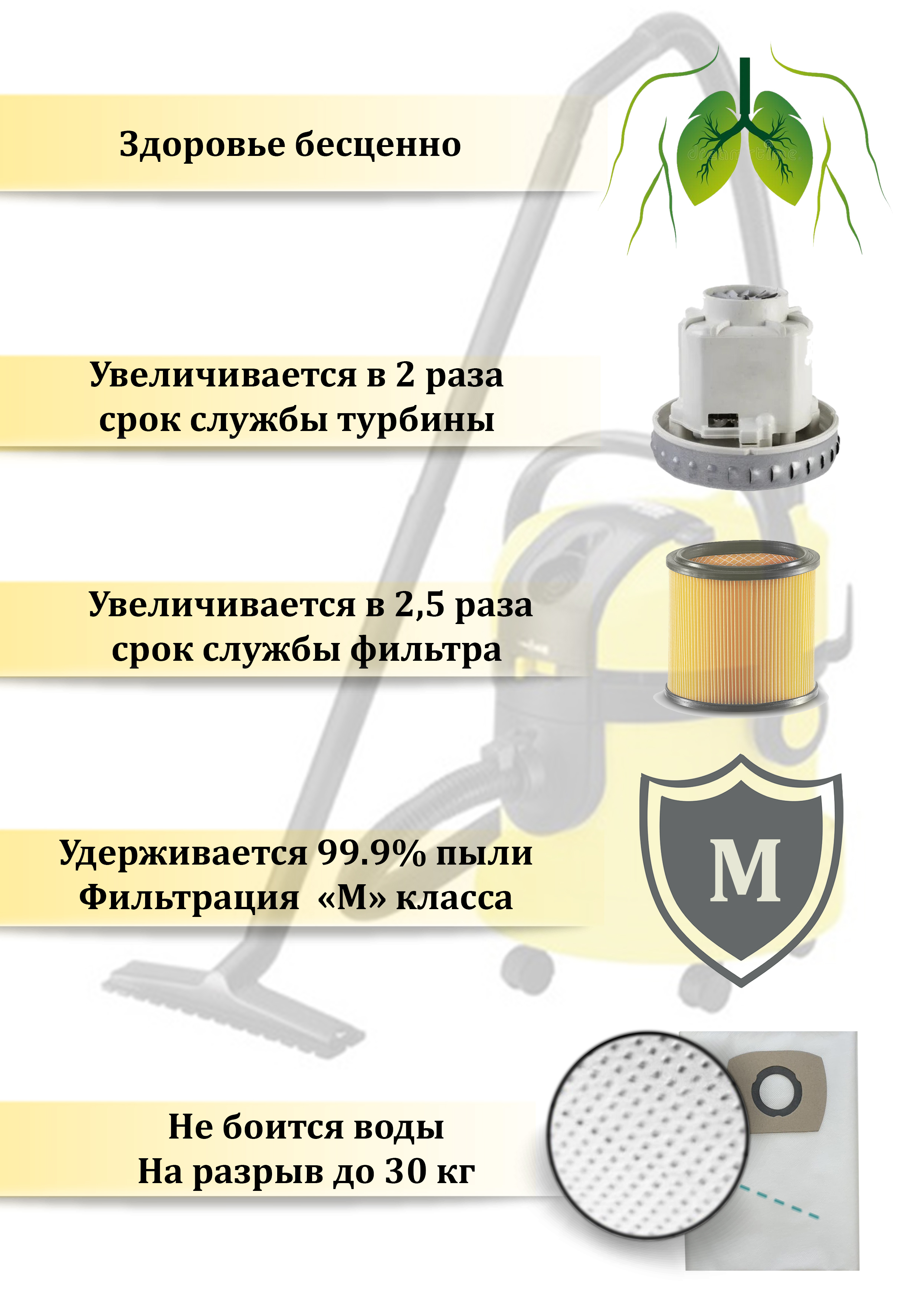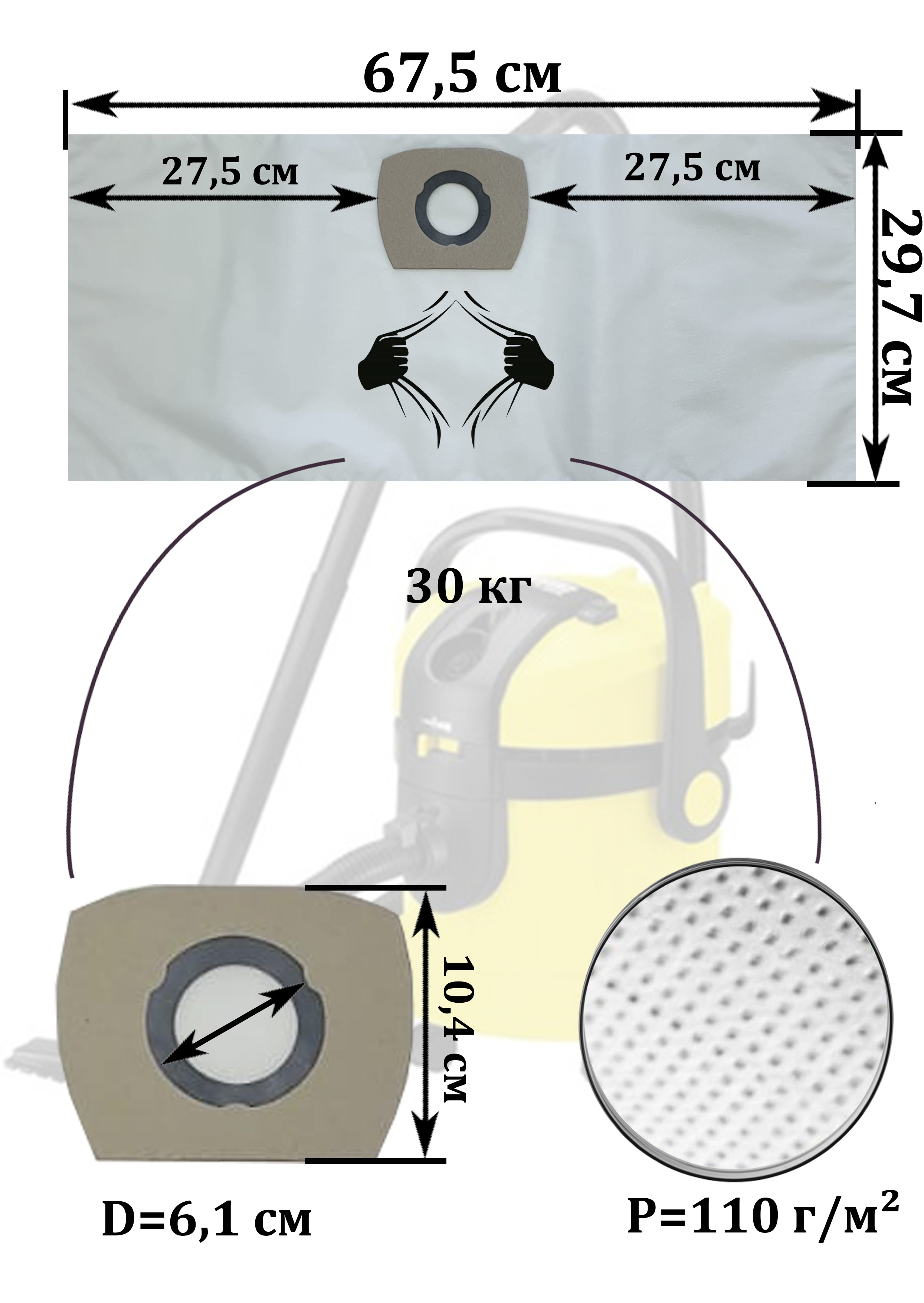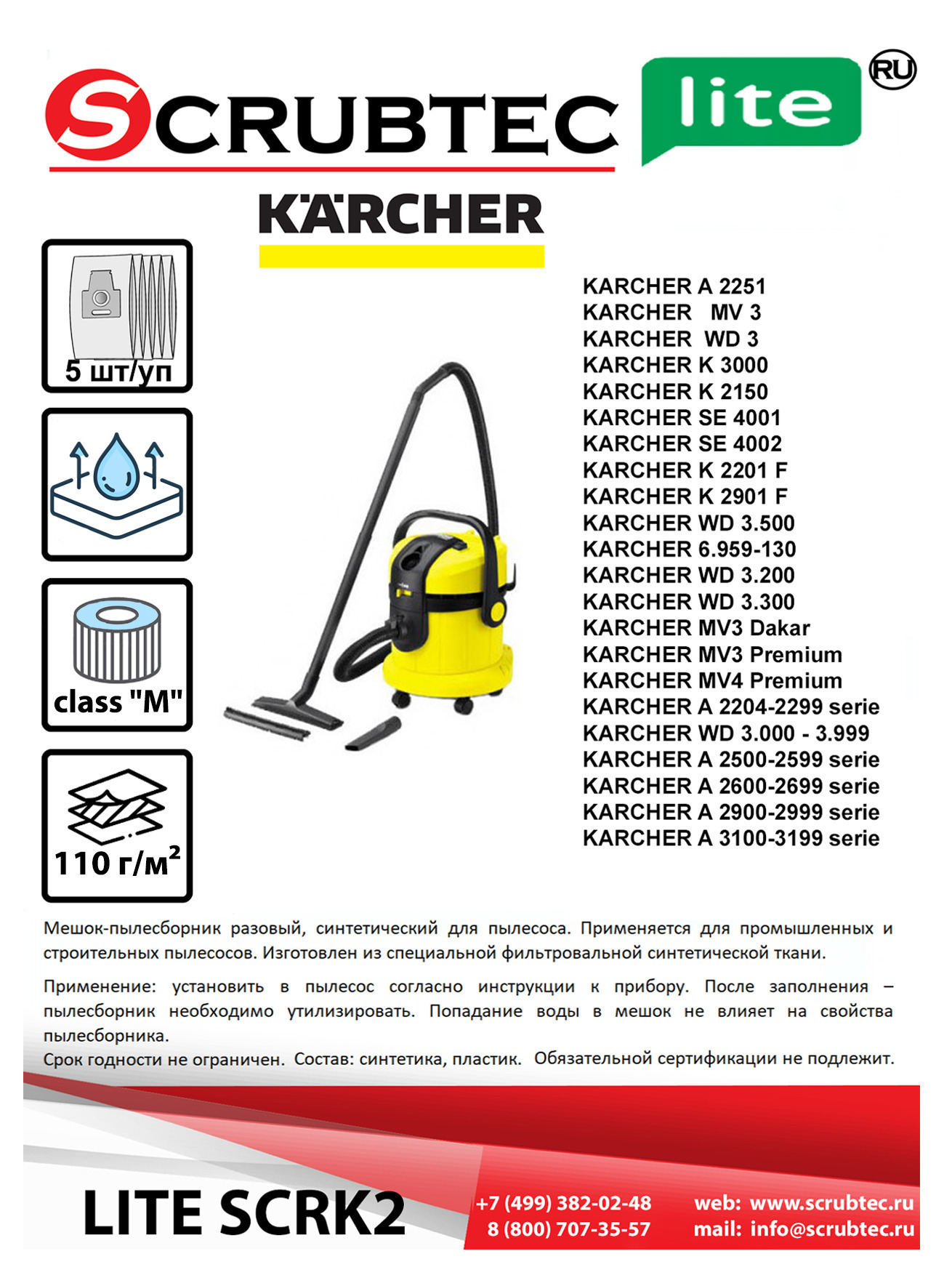 Одноразовые мешки LITESCRK2 для пылесосов Karcher WD 3, MV 3, WD 3.000-3999, Керхер ВД, 5 шт. в упаковке.