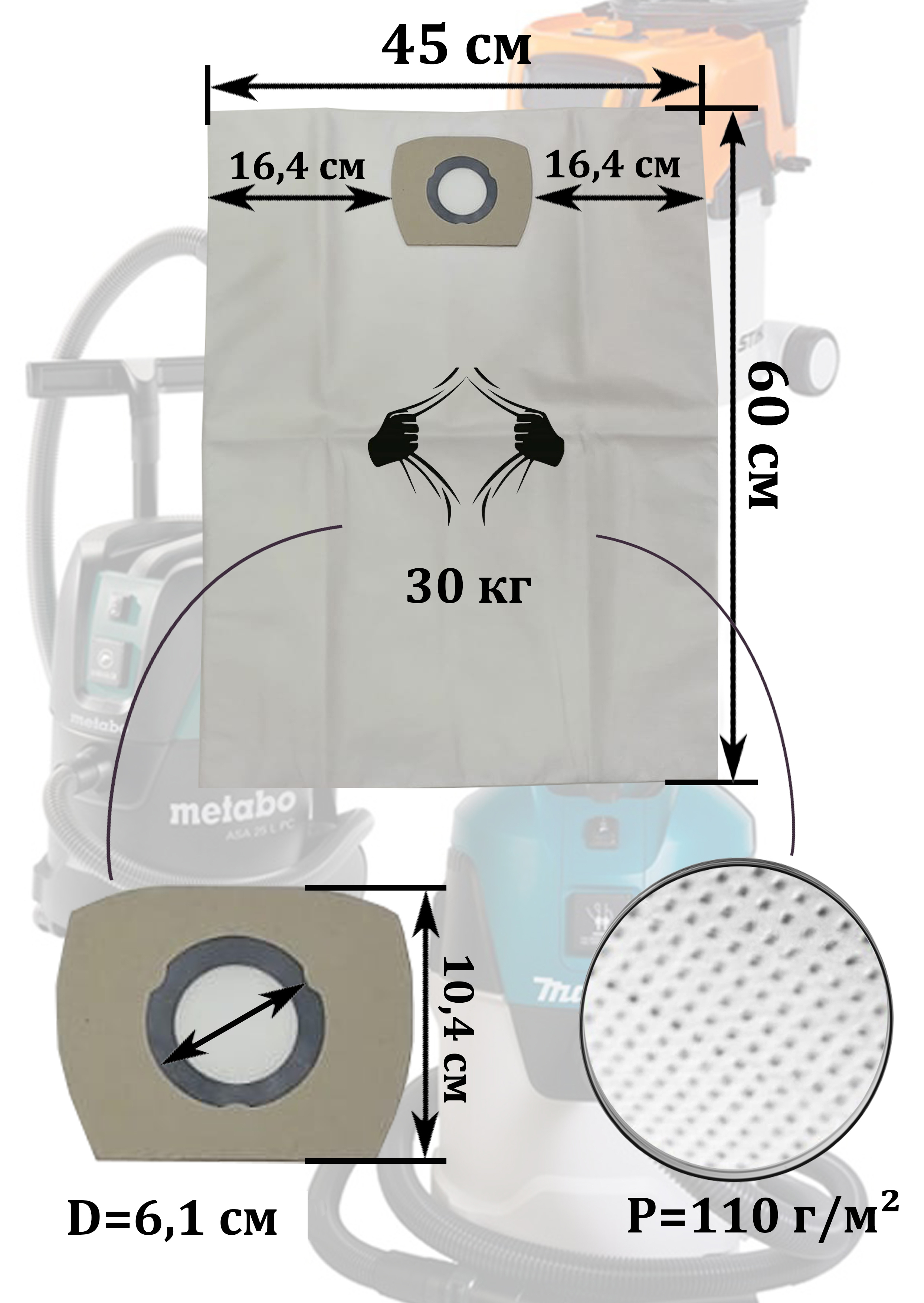 Одноразовые мешки LITESCRR3 для пылесоса BOSCH (Бош) GAS 35, GAS 12-25 PL, MAKITA (Макита) VC 2512, VC 3011, VC 3012 L, и др., 5шт.