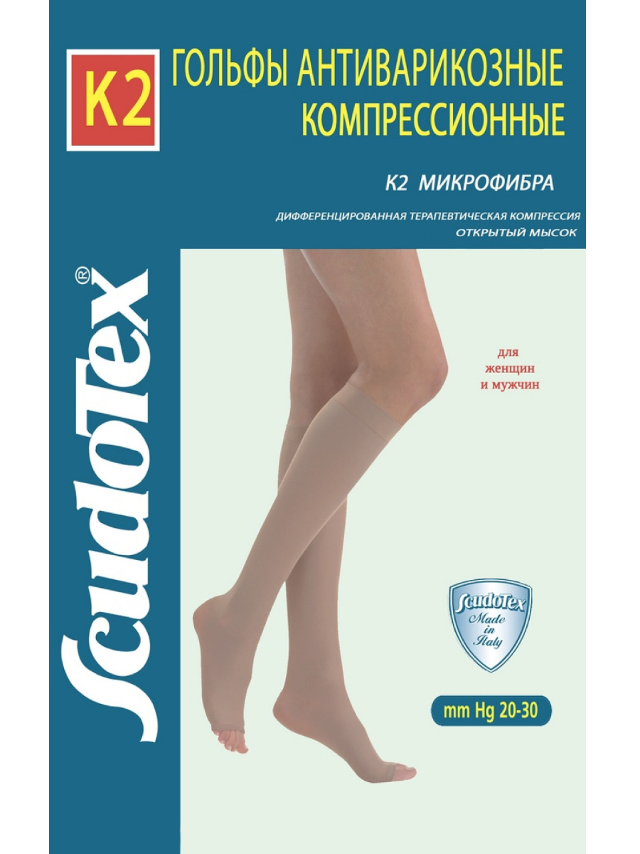 ScudoTex / Компрессионные чулки второй класс (24-30 mmHg) с открытым носком и силиконовой резинкой