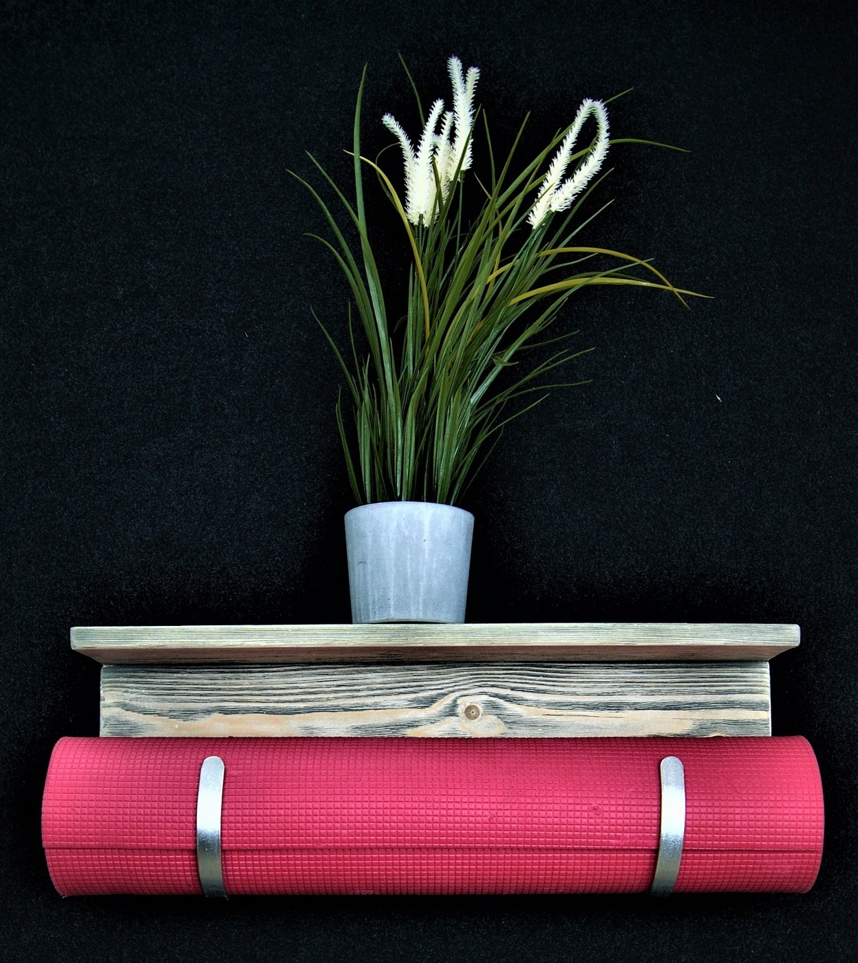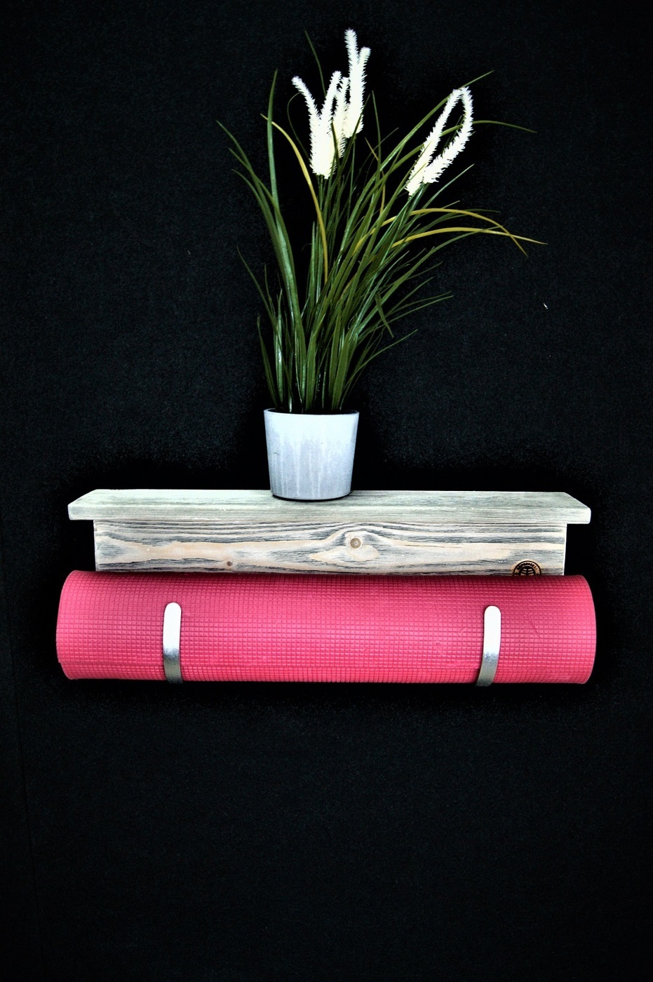 Полка держатель коврика для Йоги СДРЕВОБУДЬ 600*250 Сосна цвет серый
