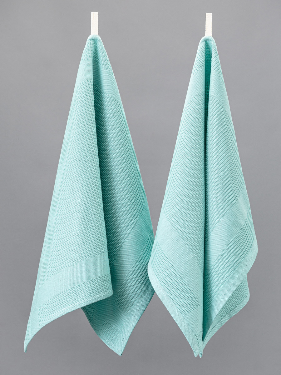 Набор из 2-х кухонных вафельных полотенец SealStore, 100% хлопок (40*60), бирюза хорс
