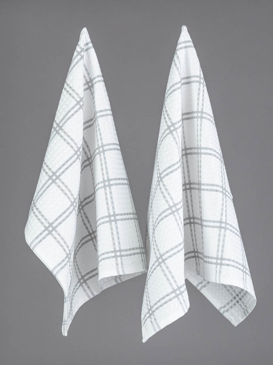 Набор из 2-х кухонных вафельных полотенец SealStore, 100% хлопок (40*60), клетка серая Спайс