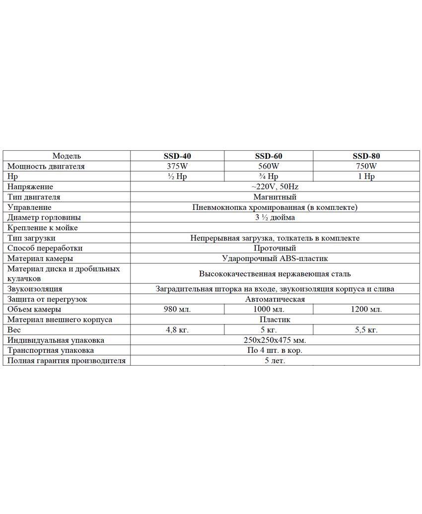 Измельчитель бытовых отходов Seaman SSD-40 с пневмокнопкой