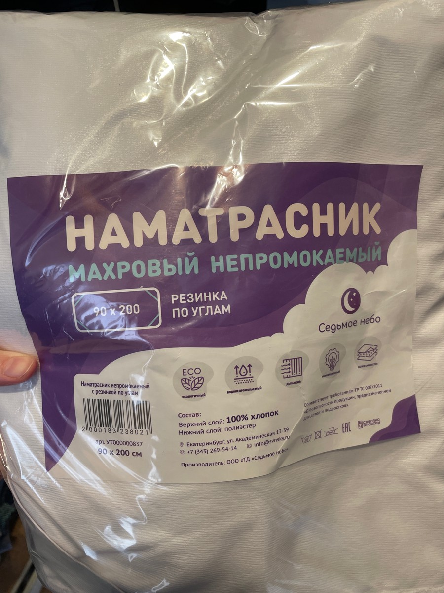 Наматрасник защитный Седьмое небо непромокаемый махровый с резинкой по периметру 90x200х25см