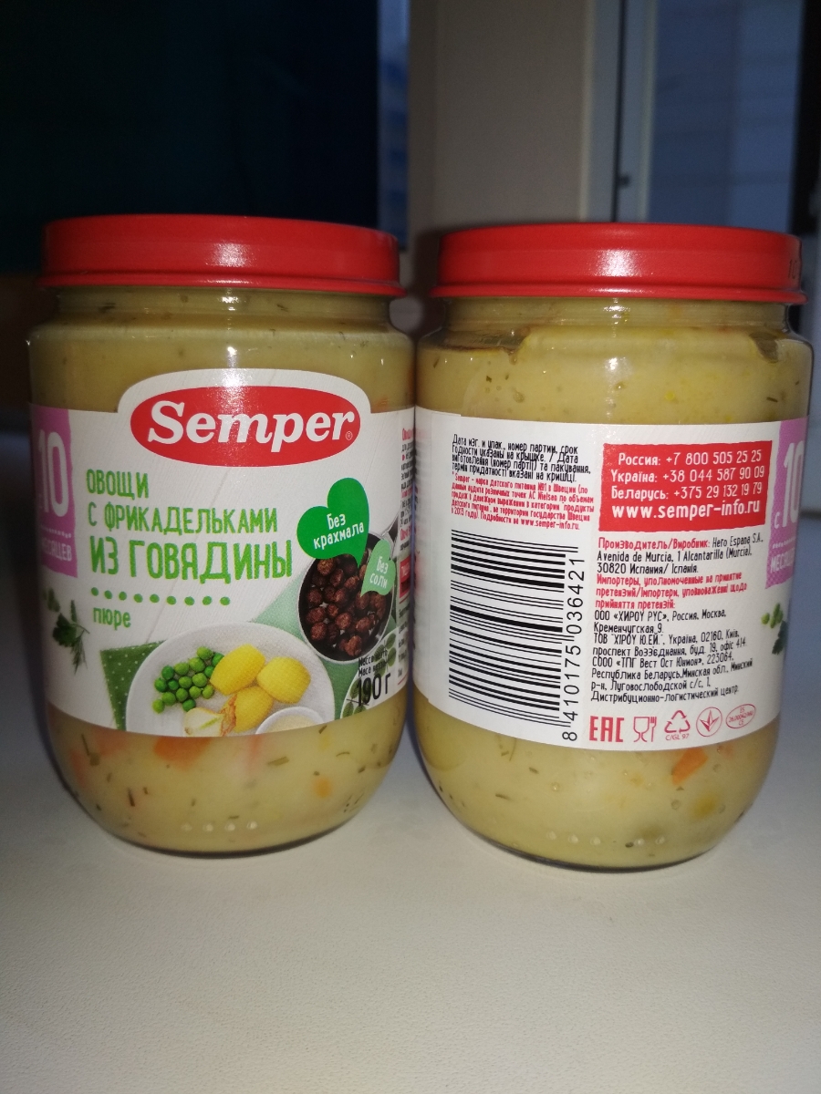 Пюре Semper говядина (с 6 месяцев) 90 г, 1 шт