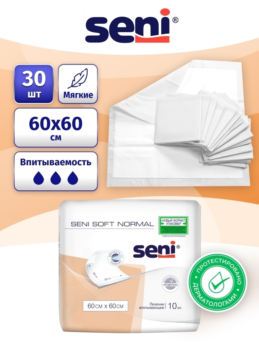 Пеленки одноразовые, SENI SOFT, Из целлюлозы, Гигиенические, Впитывающие, 60х60, 30 ШТУК