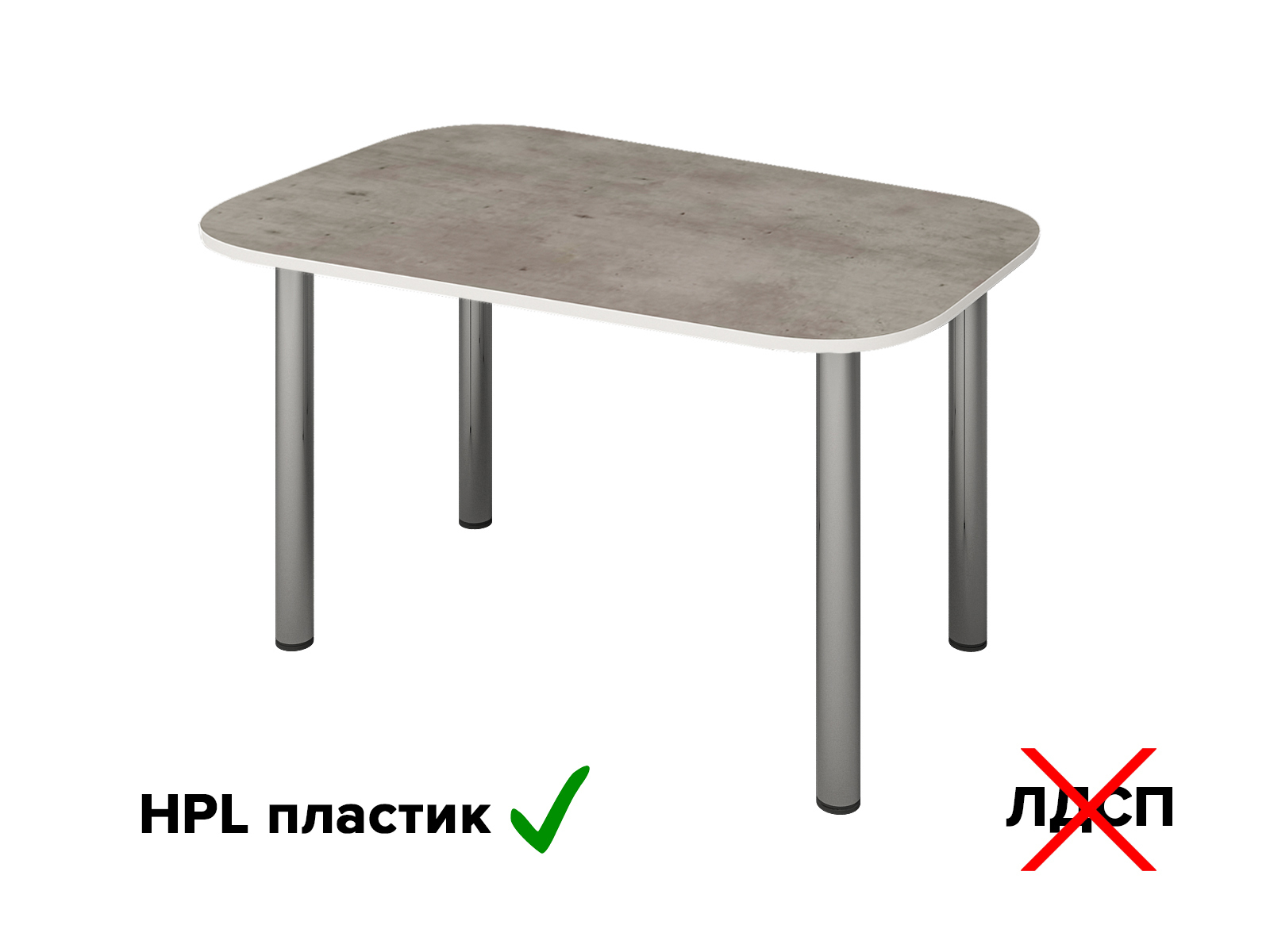 Стол обеденный Нераскладной бетон/хром, 100х60х73 см