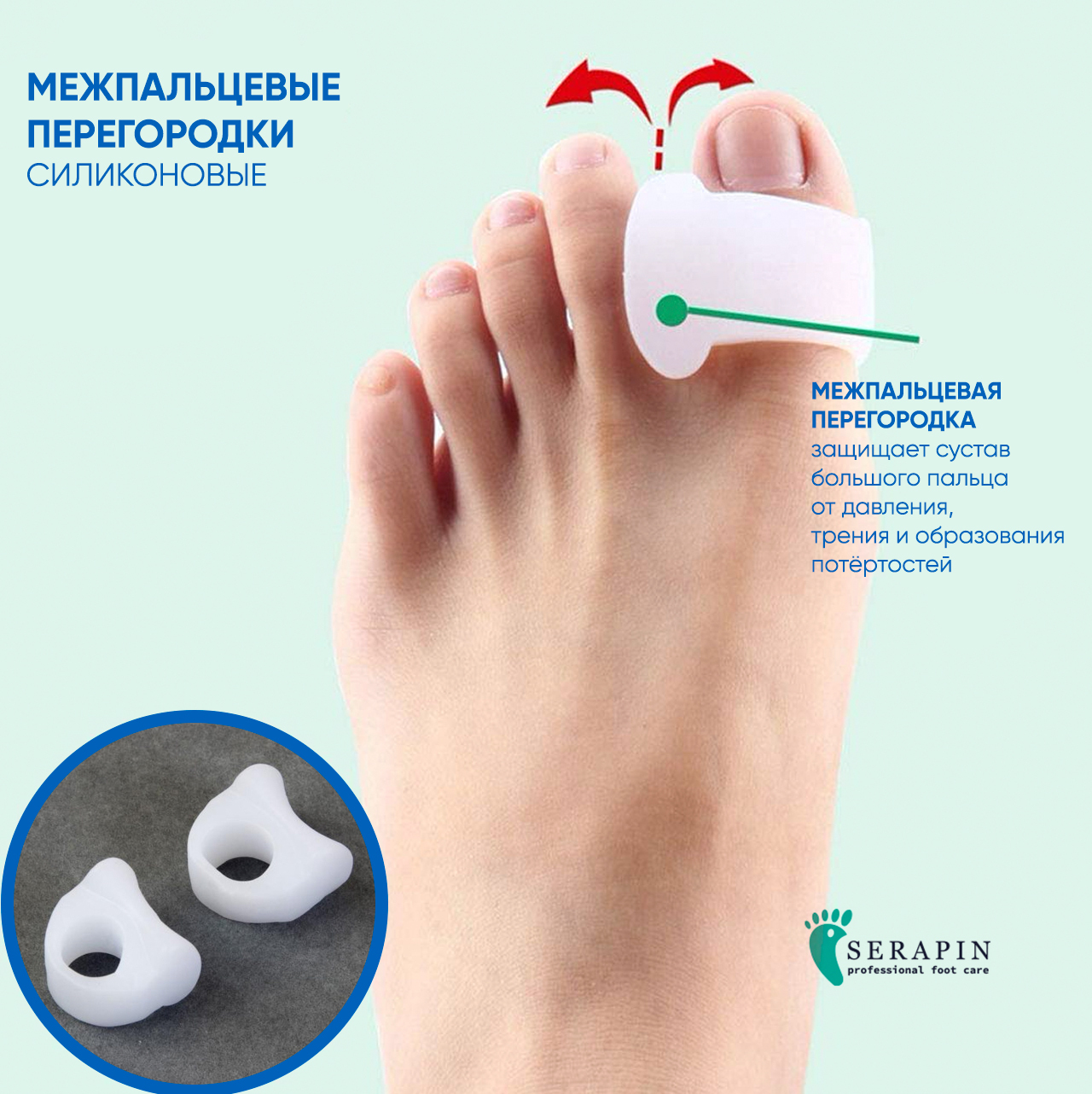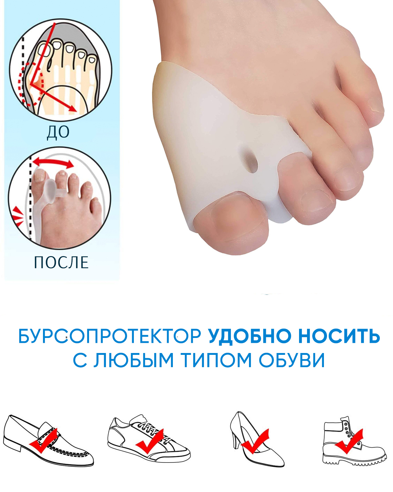 Бандаж большого пальца ноги, Бурсопротектор, Межпальцевая перегородка, 2 шт.
