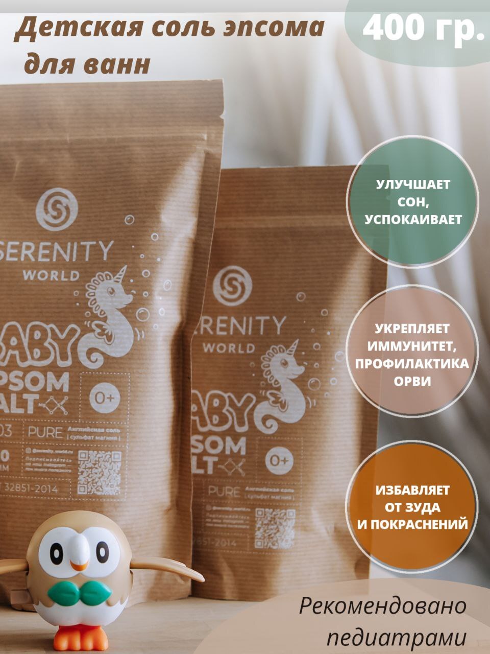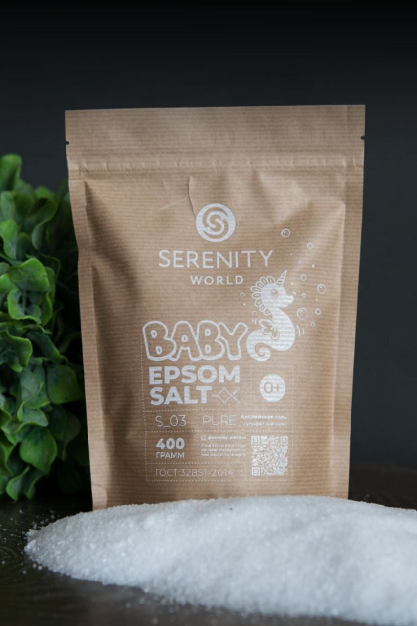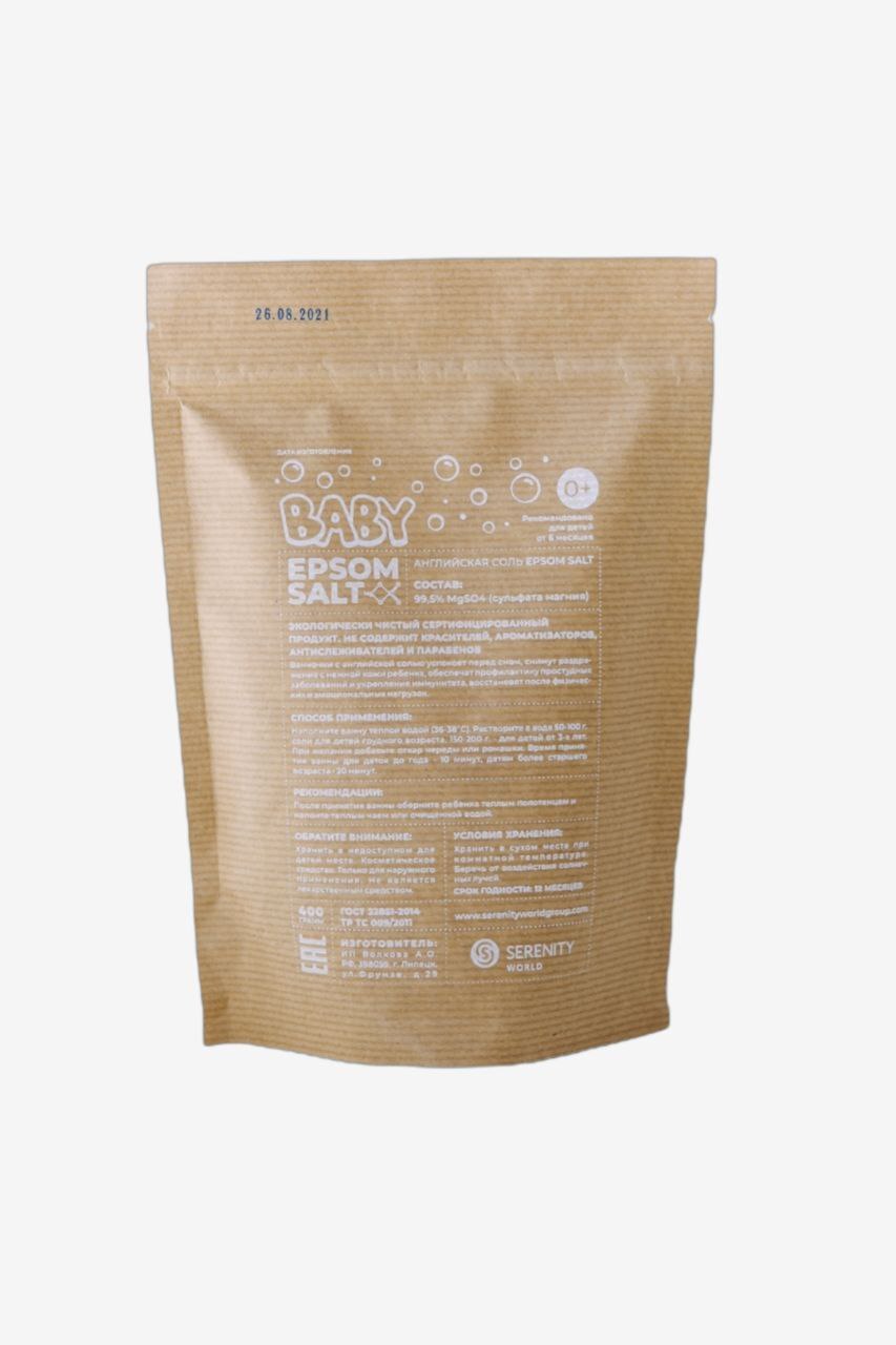 Морская английская соль с магнием для ванны детская, Epsom salt, для купания детей, 400 гр
