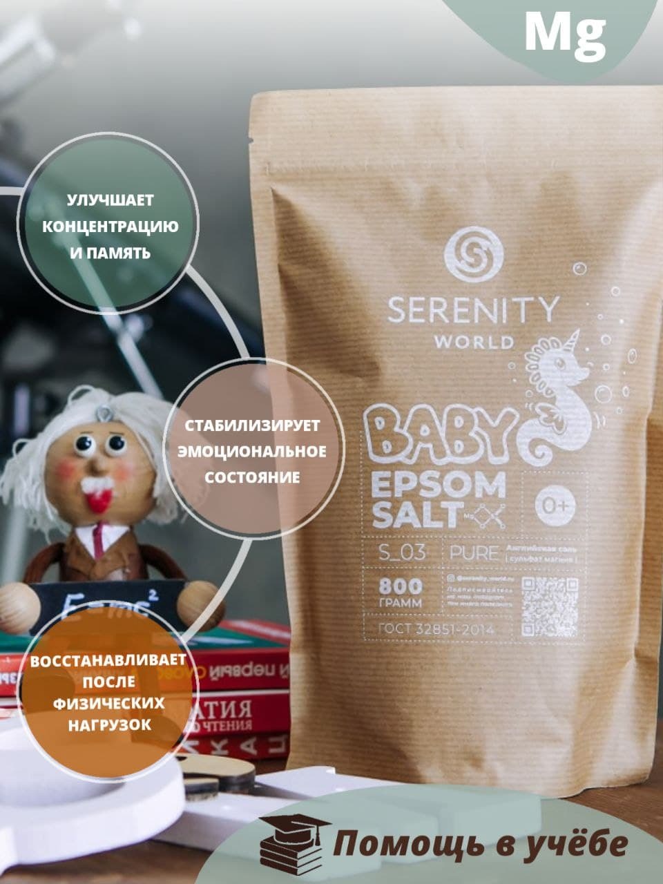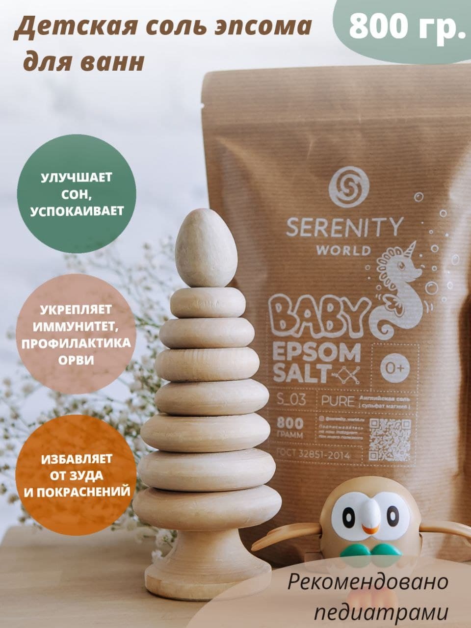 Английская магниевая соль для ванны детская, для купания детей, Epsom salt, 800 гр