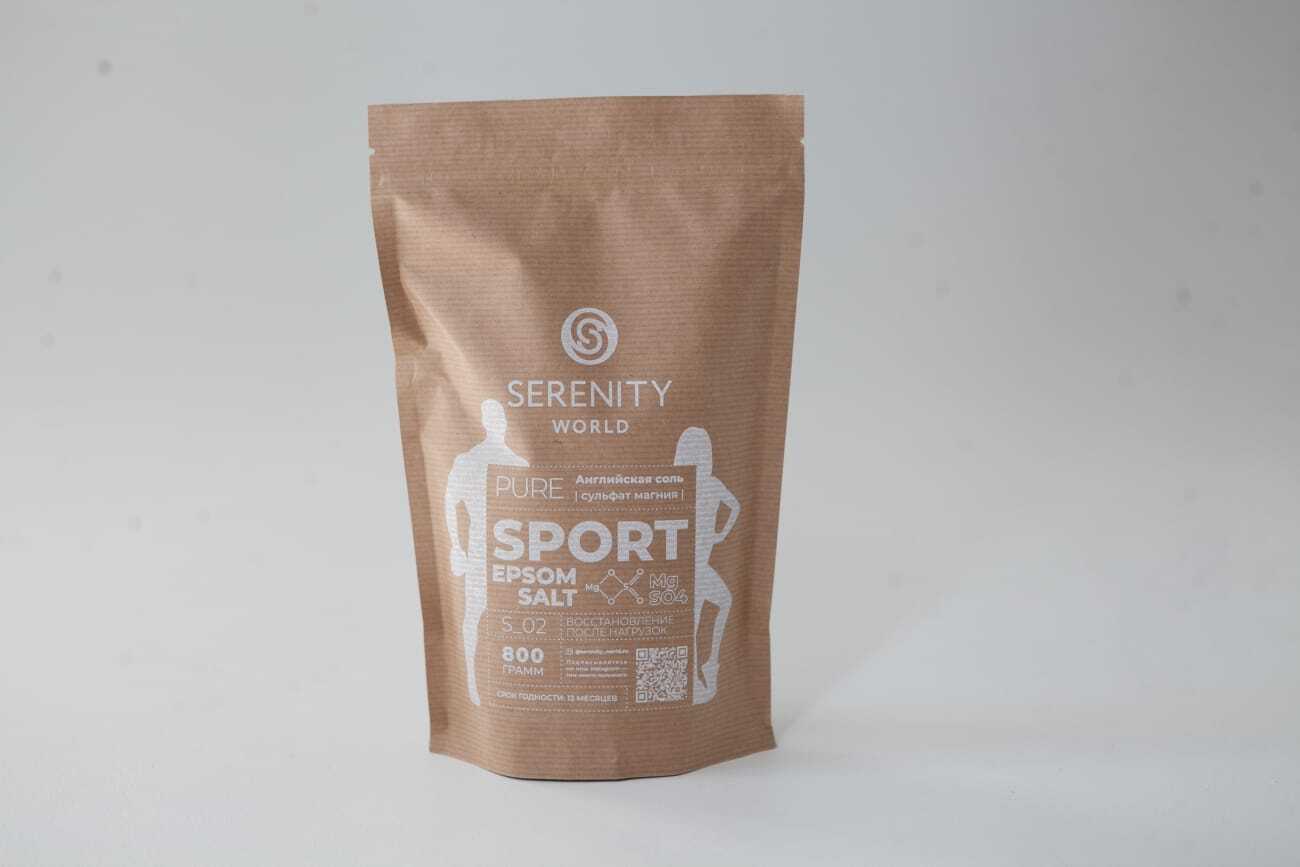 Морская английская соль магния для ванны Sport Epsom Salt 800 гр, Бишофит для похудения