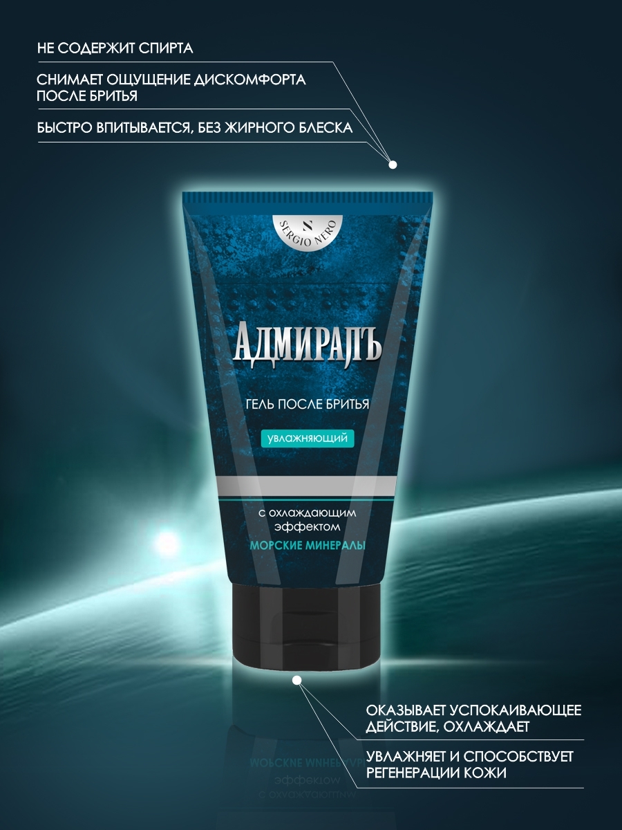 Sergio nero/ Адмиралъ, Гель после бритья, увлажняющий с охлаждающим эффектом; морские минералы
