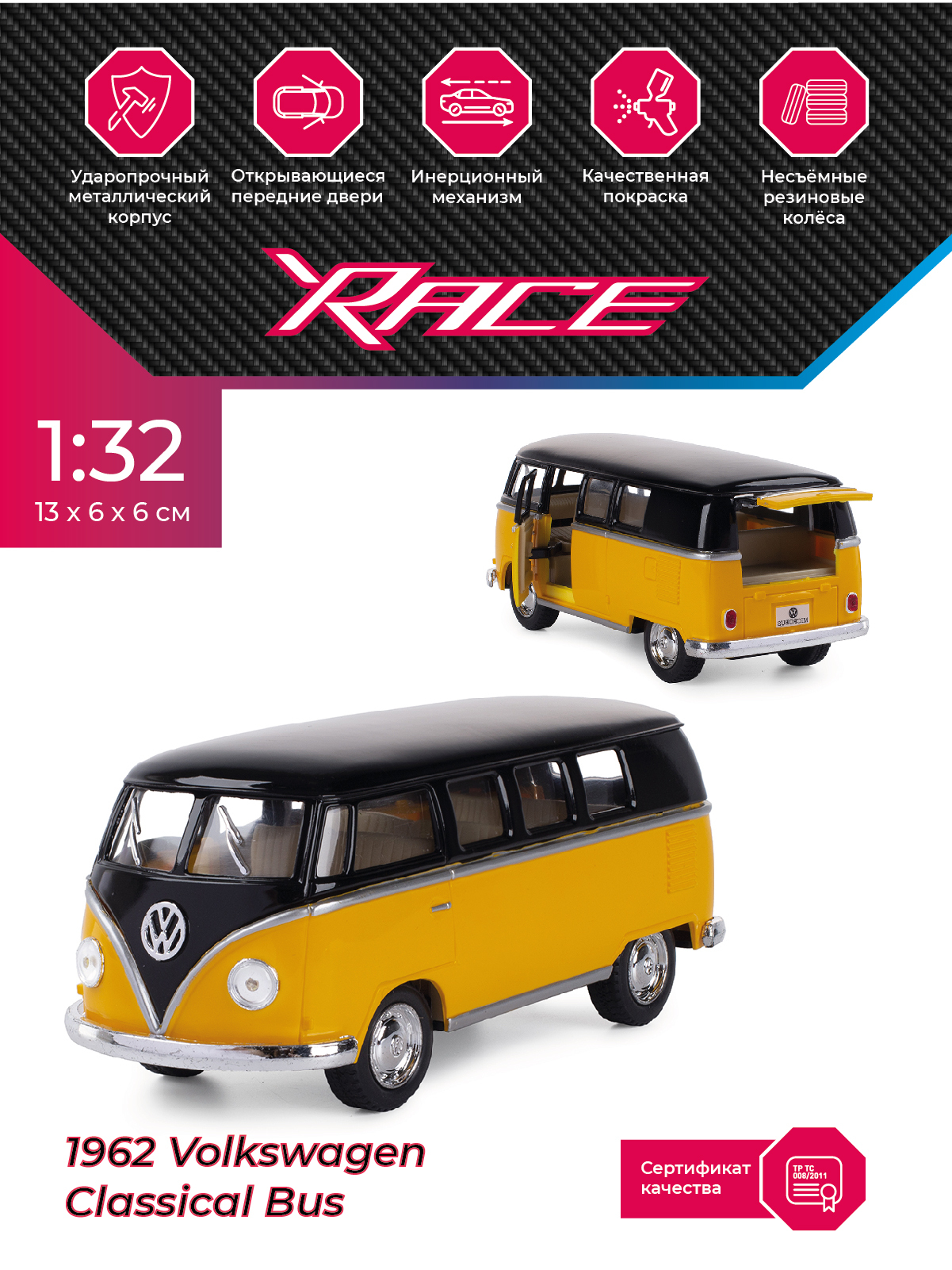 Детская инерционная металлическая машинка Serinity Toys с открывающимися дверями, модель 1962 Volkswagen Classical Bus