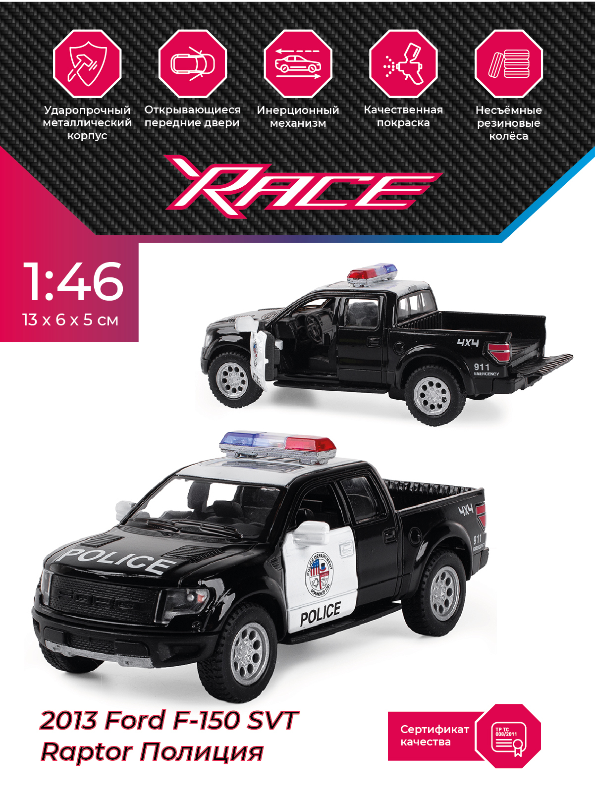 Детская инерционная металлическая машинка Serinity Toys с открывающимися дверями, модель 2013 Ford F-150 SVT Raptor полиция