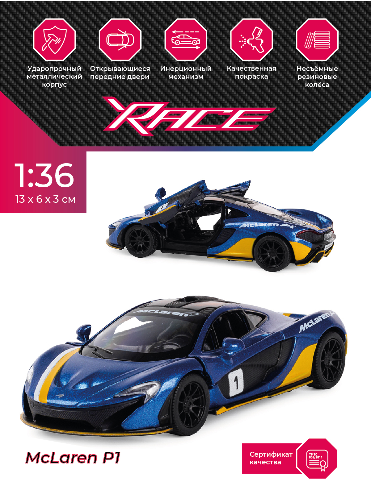 Детская инерционная металлическая машинка Serinity Toys с открывающимися дверями, модель McLaren P1