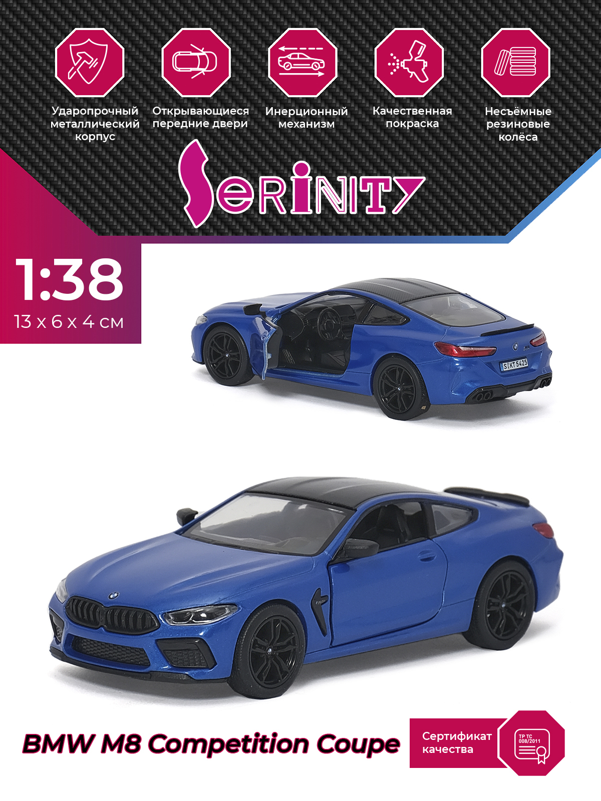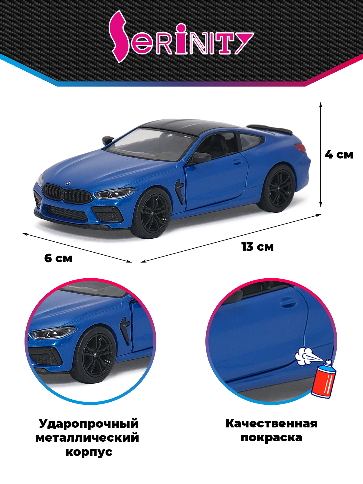 Детская инерционная металлическая машинка Serinity Toys с открывающимися дверями, модель BMW i8