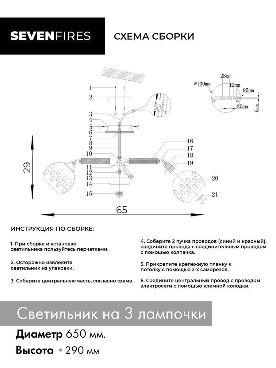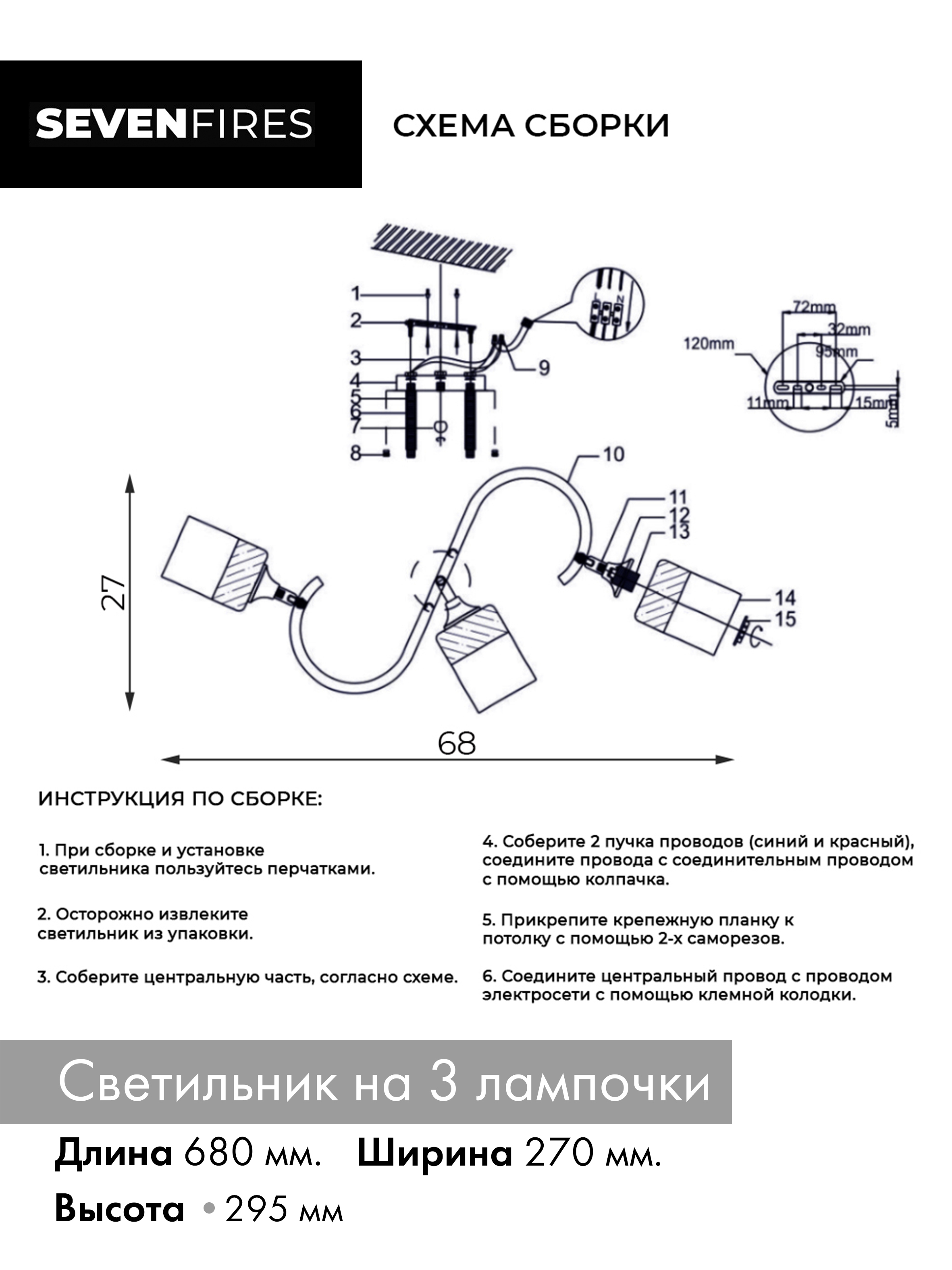 Люстра потолочная, Потолочный светильник Seven Fires GALATONE , E27, 60 Вт