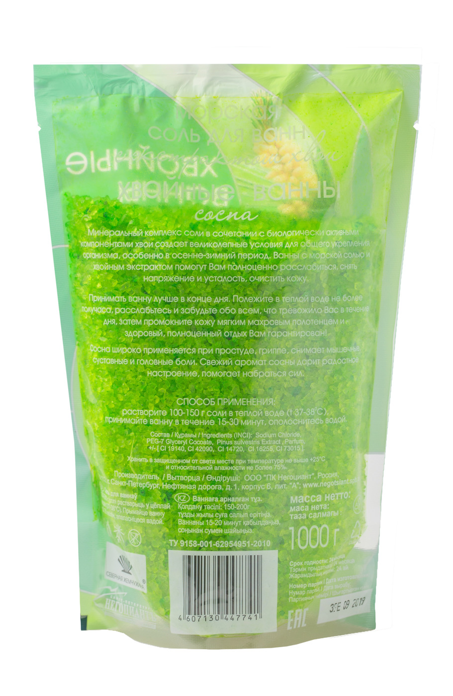 Морская соль для ванны "Хвойные ванны" сосна, 1кг