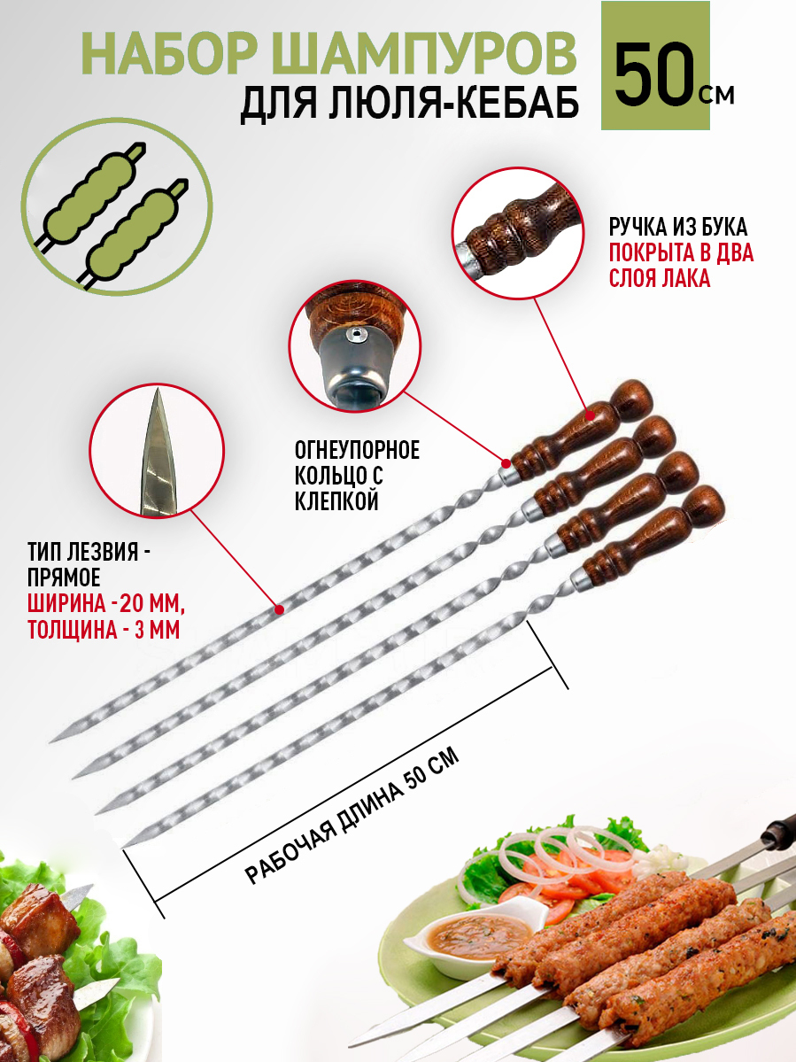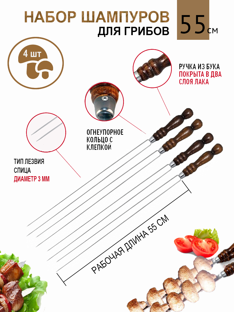 Набор шампуров SHAMPUROV, 55 см, 4 шт