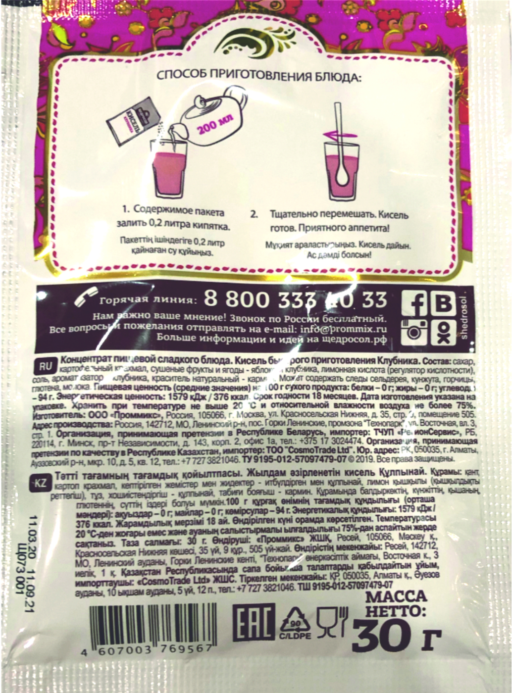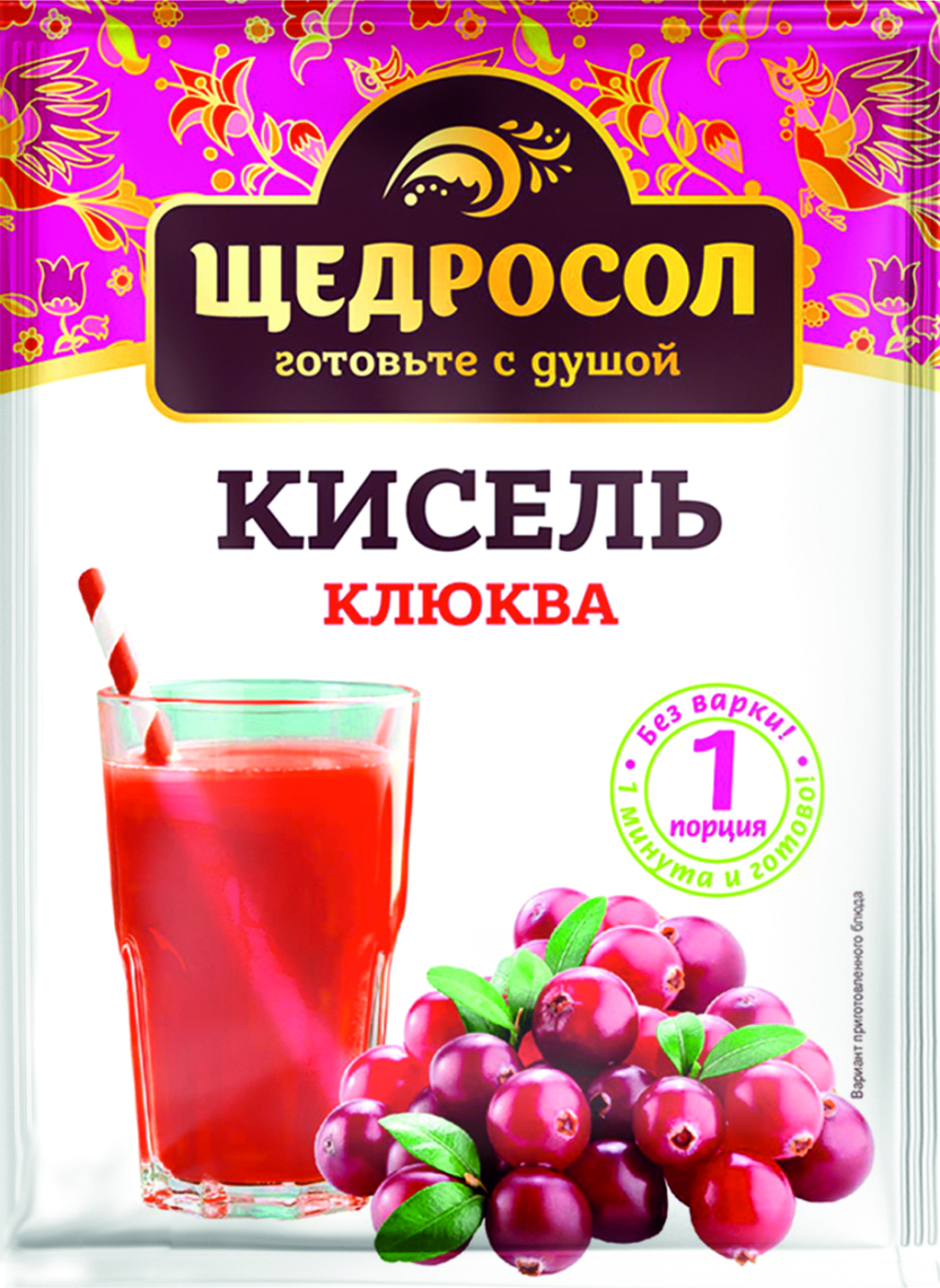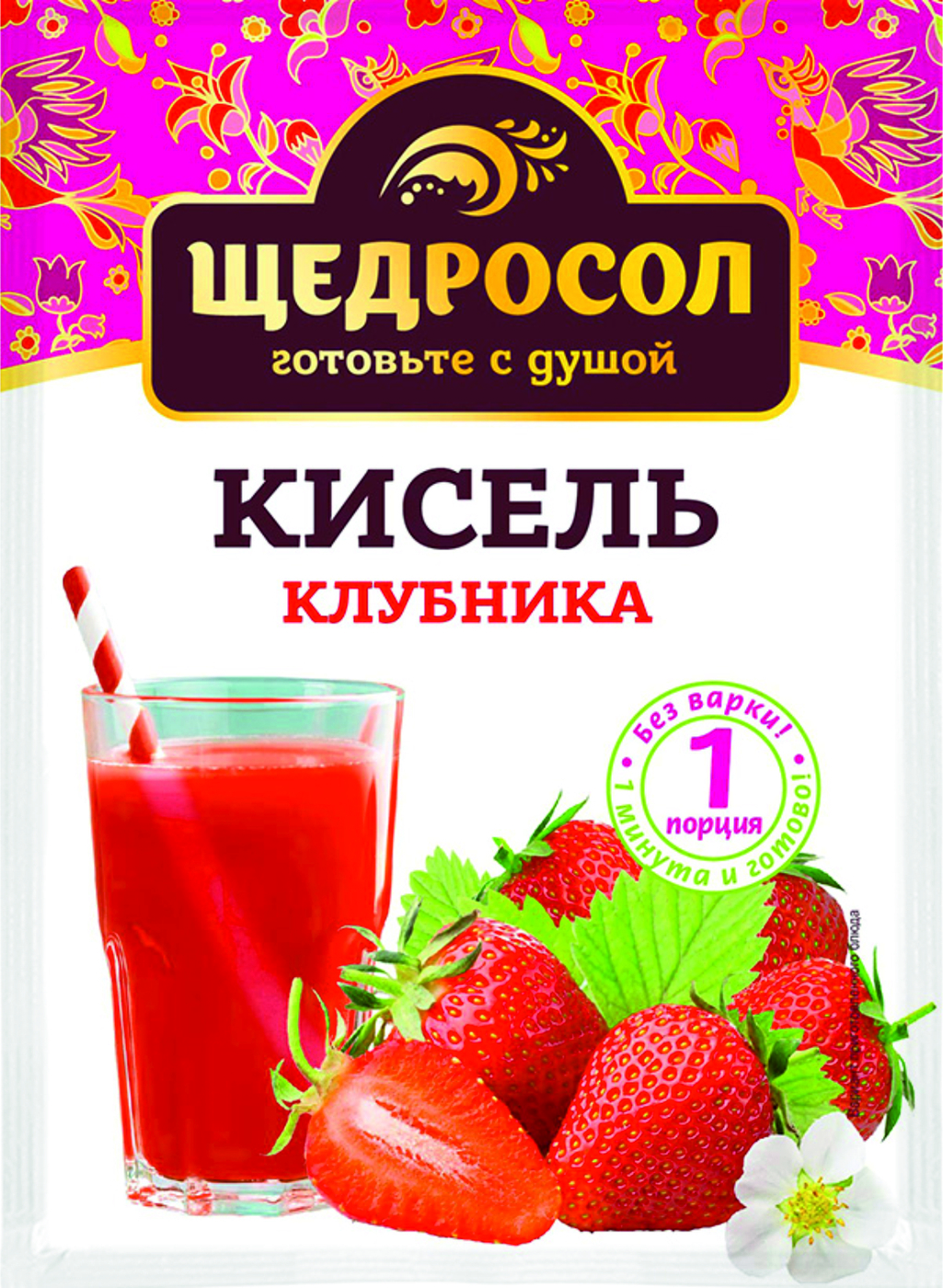"Кисель ""Клубника"" из натурального сока Щедросол пакет 30 гр. (10 шт)"